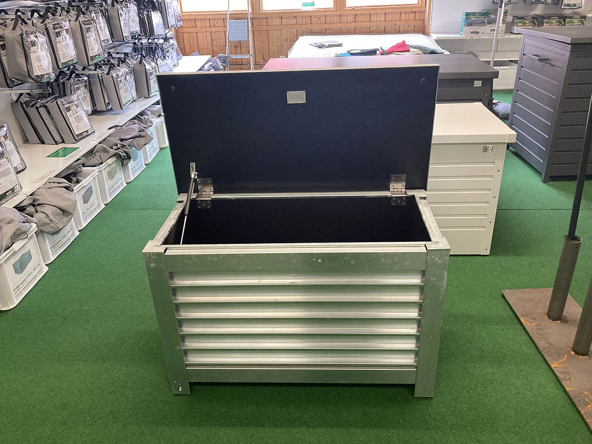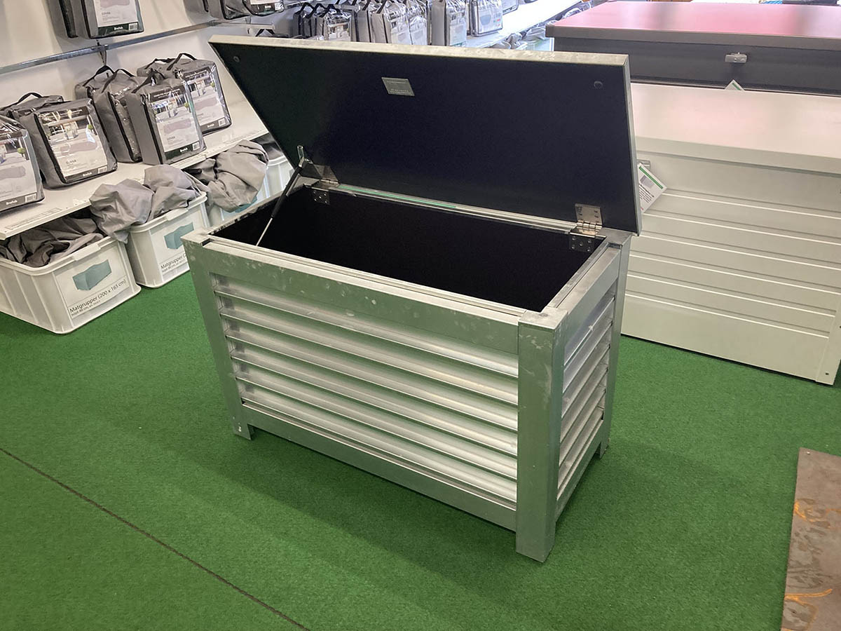 Boxen tillverkas i lamellträ på insidan som på utsidan är klätt i zink eller koppar. Boxen finns att få i två storlekar som väger 50 respektive 80 kg, tyngden gör att du inte behöver oroa dig för att de ska blåsa iväg. Inne i lådan finns en gasfjäderkolv för att underlätta öppnandet och stängandet. Dessutom är lådorna försedda med ett smart luftningsystem som gör att fuktighet och eventuellt kondens vädras ut. Lådan har även justerbara fötter för att den ska kunna stå plant även på ojämna ytor.