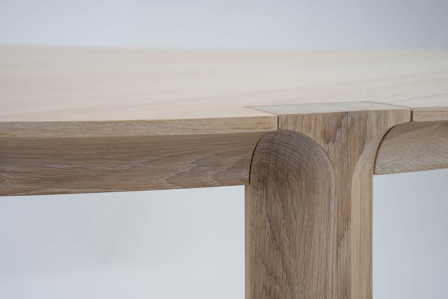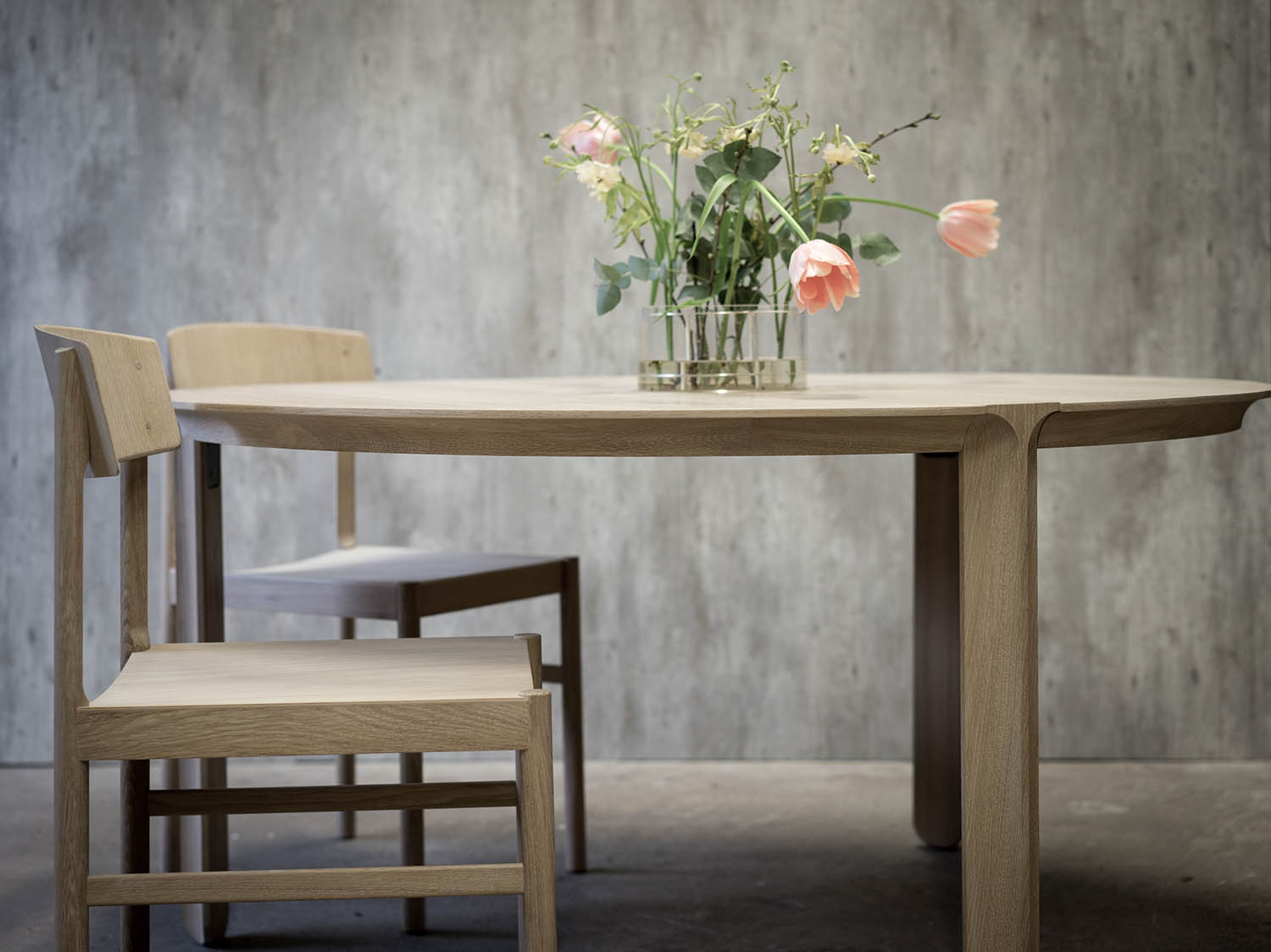 Men det står ju på tå… så tänkte vi första gången vi såg skisserna från Pierre Sindre. Den vackra AMOR med den tjocka frästa toppen. Hur gör man en 5 cm tjock skiva i massiv ek tunn? Pierre har i AMOR fångar själva essensen i Mavis. Komplex enkelhet, överraskande, med stort mått av hantverk. Övergången mellan ben och topp bryggar över design, hantverk och teknisk kunskap. Produkt och design i perfekt balans