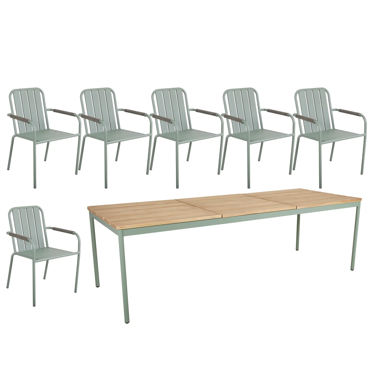 Bordsstativ i stadig aluminium och med justerbara fötter. Kommer i två storlekar, för den mellanstora familjen såväl som sommarens alla bjudningar och tillfällen till umgänge. Välj efter eget tycke mellan mörkt Antracitgrå och en nutida dämpad grön nyans (Dusty Green). Borden i Nox-serien tillåter dig att skapa ett matbord helt efter eget huvud. Bordsskiva i klassisk teak eller i bambu och aluminiumben i två fina nyanser.