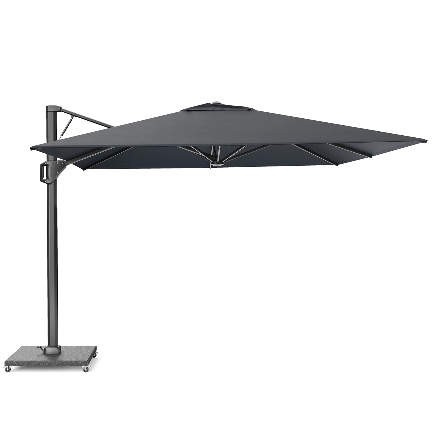 Platinum Sun & Shade frihängande parasoll Beaufort med stativ i färgen antracit och tyg i färgen matt svart. Beaufort är ett vindstabilt hängarmsparasoll. Designad för situationer och platser med mer vind, såsom stora trädgårdar och sjöstränder. Med stort fokus på design och användarvänlighet ger Beaufort säkerhet på blåsiga dagar. Beaufort ska självklart fällas ihop när parasollet inte används för att skydda det från vind.