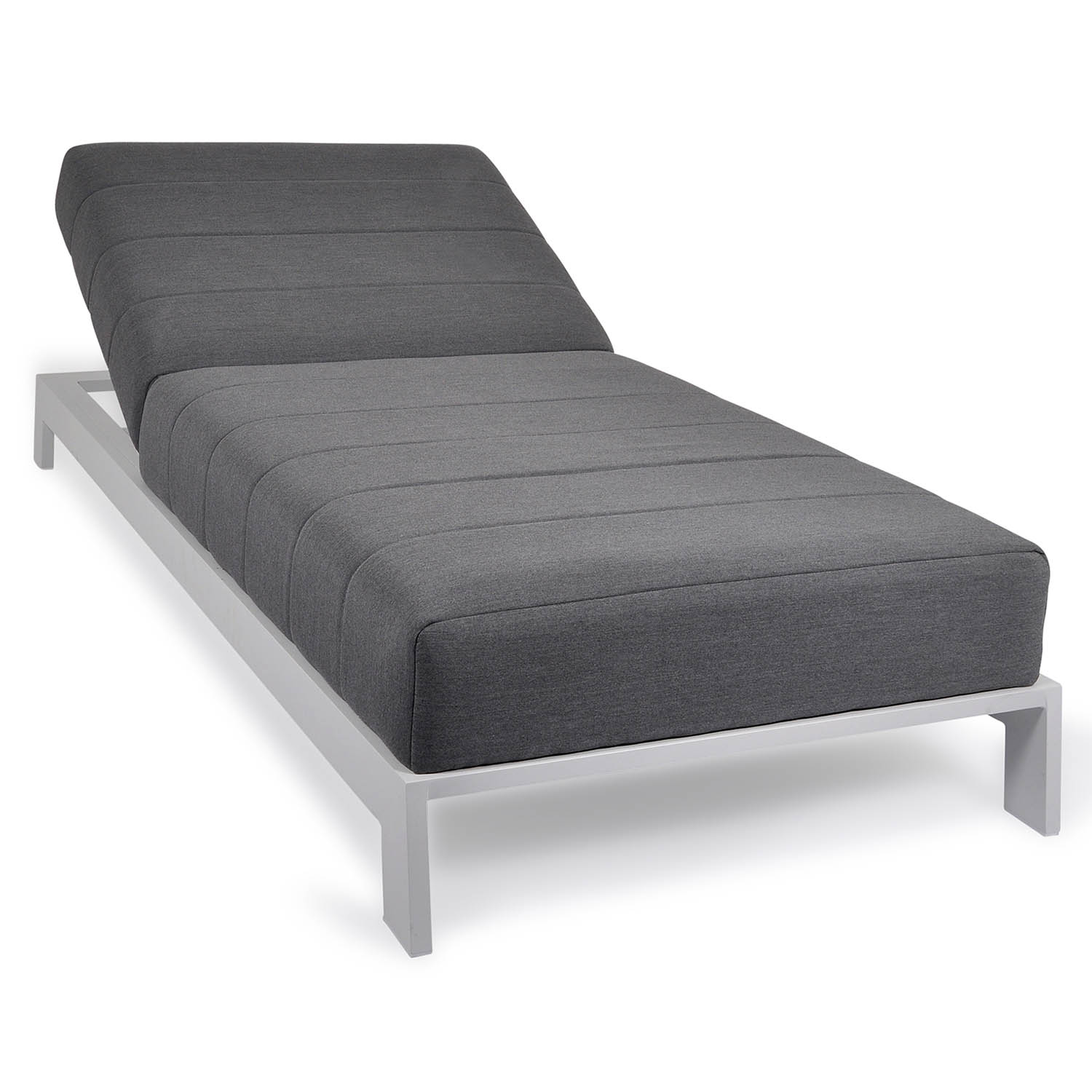 Bite solsäng med vattenavstötande och mögelavvisande sunbrelladyna i quickdryfoam. Stomme i aluminium. Torka av solsängen med en torr trasa efter en regnskur, 15 min senare kan man sitta eller ligga på den igen.