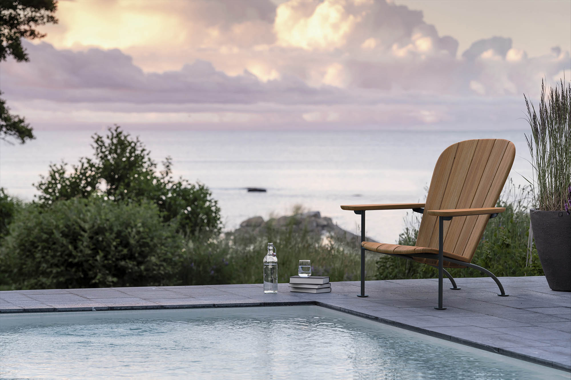 Fåtöljen Böste är en hyllning till den ursprungliga Westport-stolen. Den kommer i en förfinad version med pulverlackerat rostfritt stål och slitstark FSC-certifierad teak.