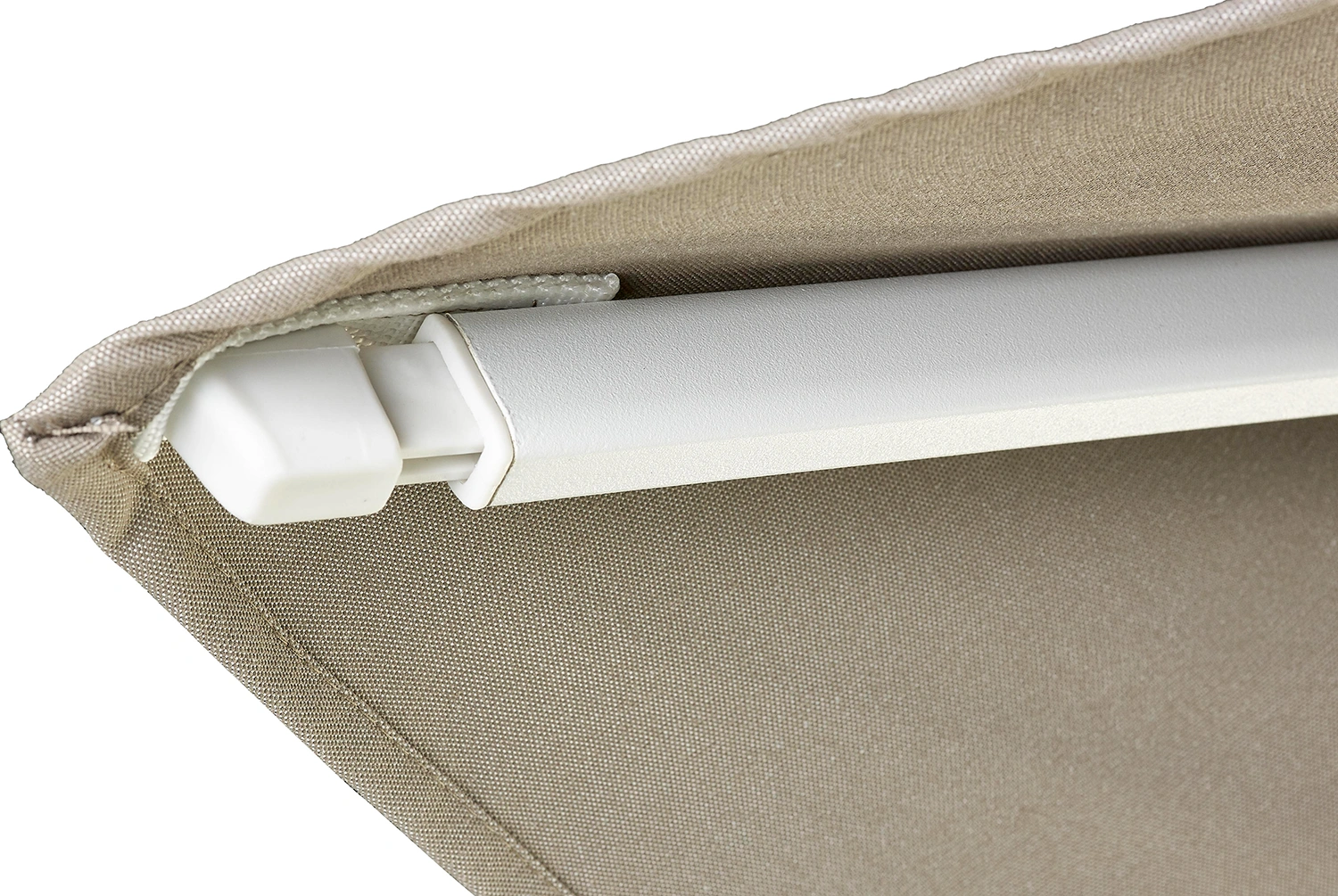 Parasollet levereras utan bas eller fotkryss. Parasollet kräver en parasollfotsvikt minst 90 kg. Vi rekommenderar att du placerar detta parasoll på en parasollfot från Platinum Sun & Shade. Dessa är försedda med hjul så att parasollet är lätt att flytta. Platinum Sun & Shade erbjuder även In-Ground parasollfötter som kan grävas ner eller gjutas fast i marken. Detta ger dig mer utrymme på din uteplats.