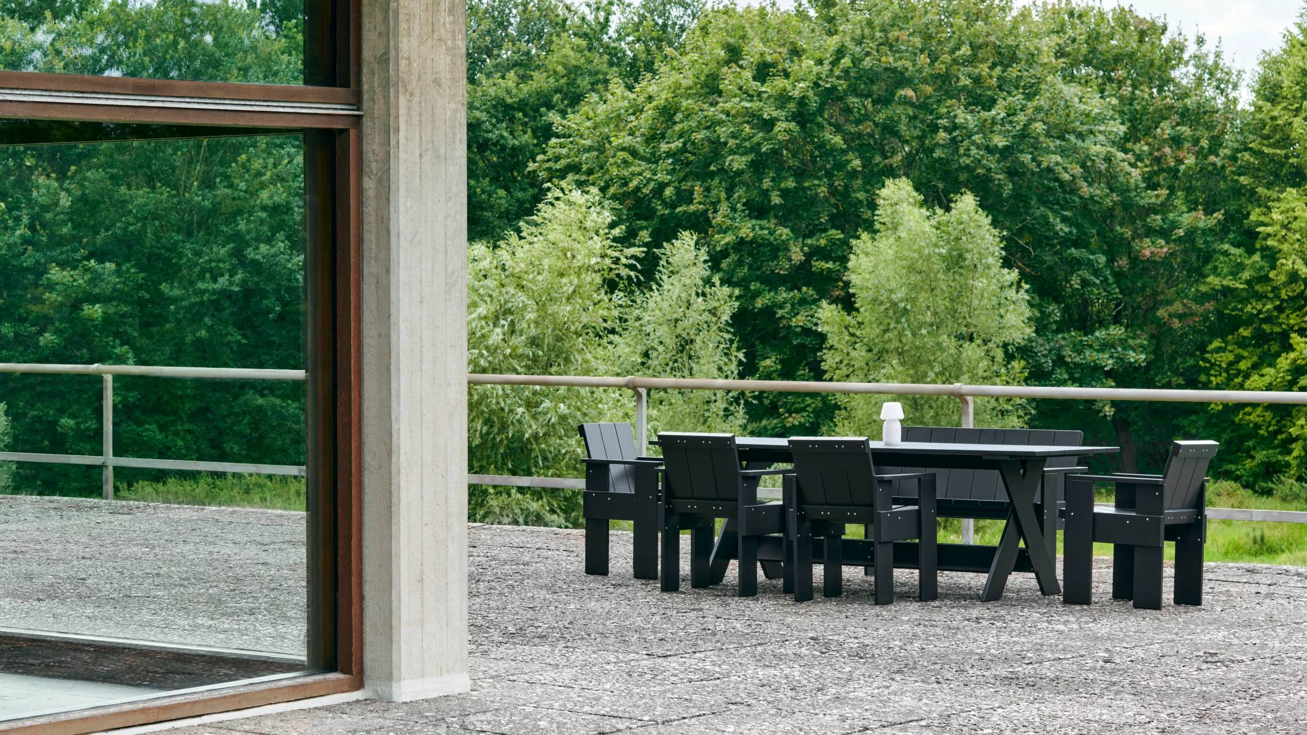 Matbordet Crate är tillverkad med respekt för den ursprungliga designen och delar samma exakt balanserade proportioner och transparent konstruktion för att minimera produktionskostnaderna och optimera monteringsprocessen. Finns i två olika längder, med en rektangulär bordsskiva och diagonala tvärbalkar. Bordets enkelhet och rumsliga design speglar designerns arkitektoniska principer – ger funktionalitet och komfort utan att ta upp utrymme. Bordet är tillverkat i massiv furu, med en vattenbaserad lackerad finish i olika färgalternativ, passar för en mängd utomhusmiljöer.