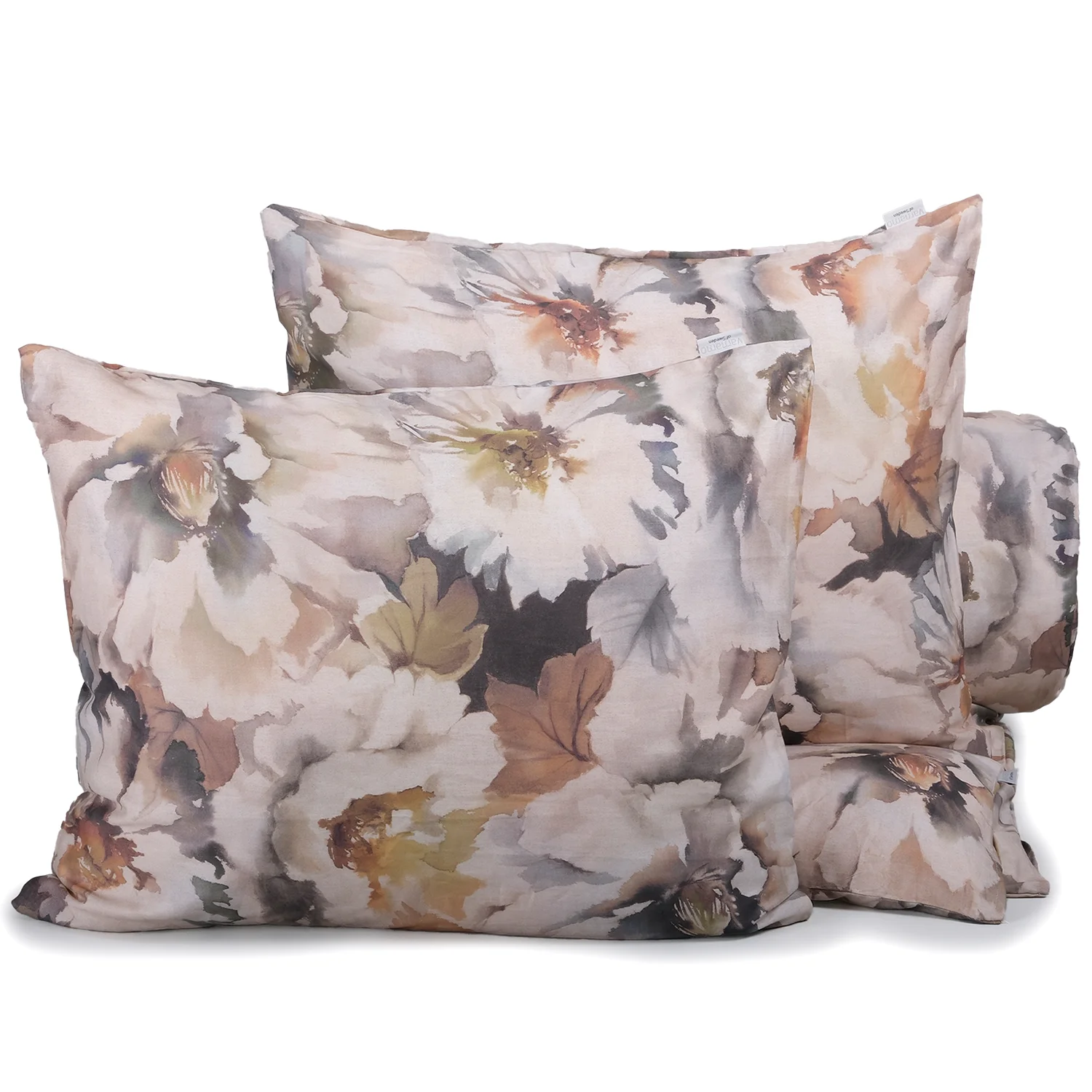 Storblommigt påslakanset i beige bruna toner. Gjort i 100% bomullssatin med en otrolig lyster och en trådtäthet på 272 TC.