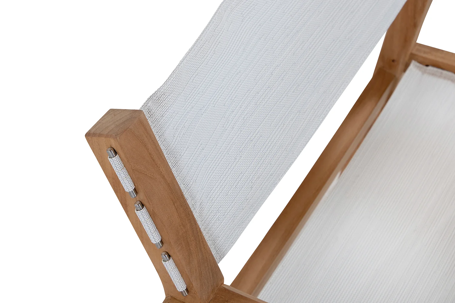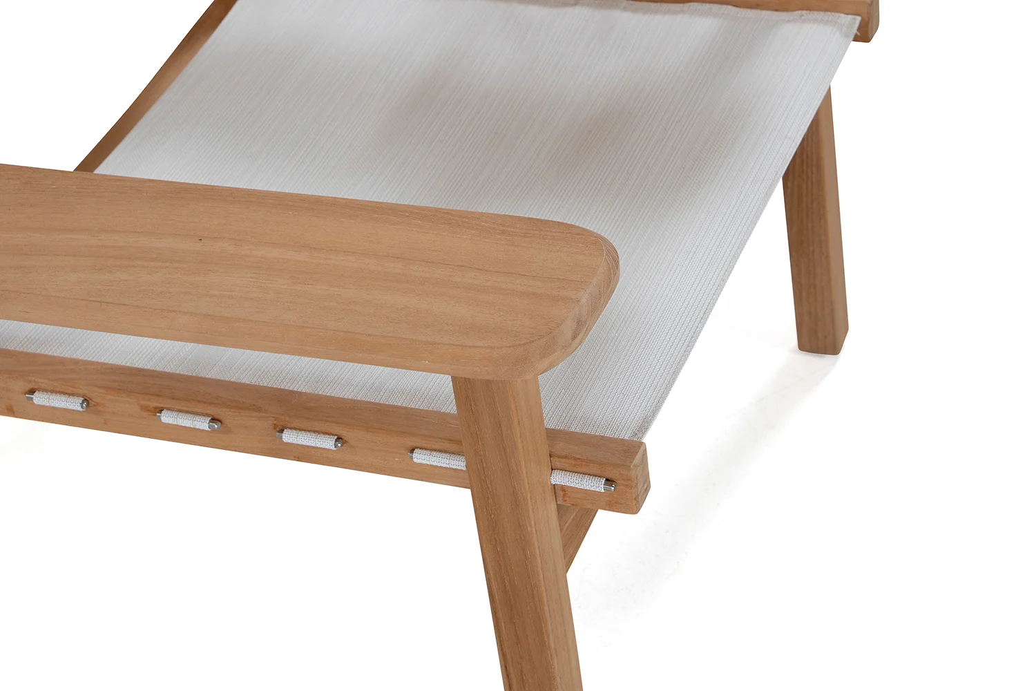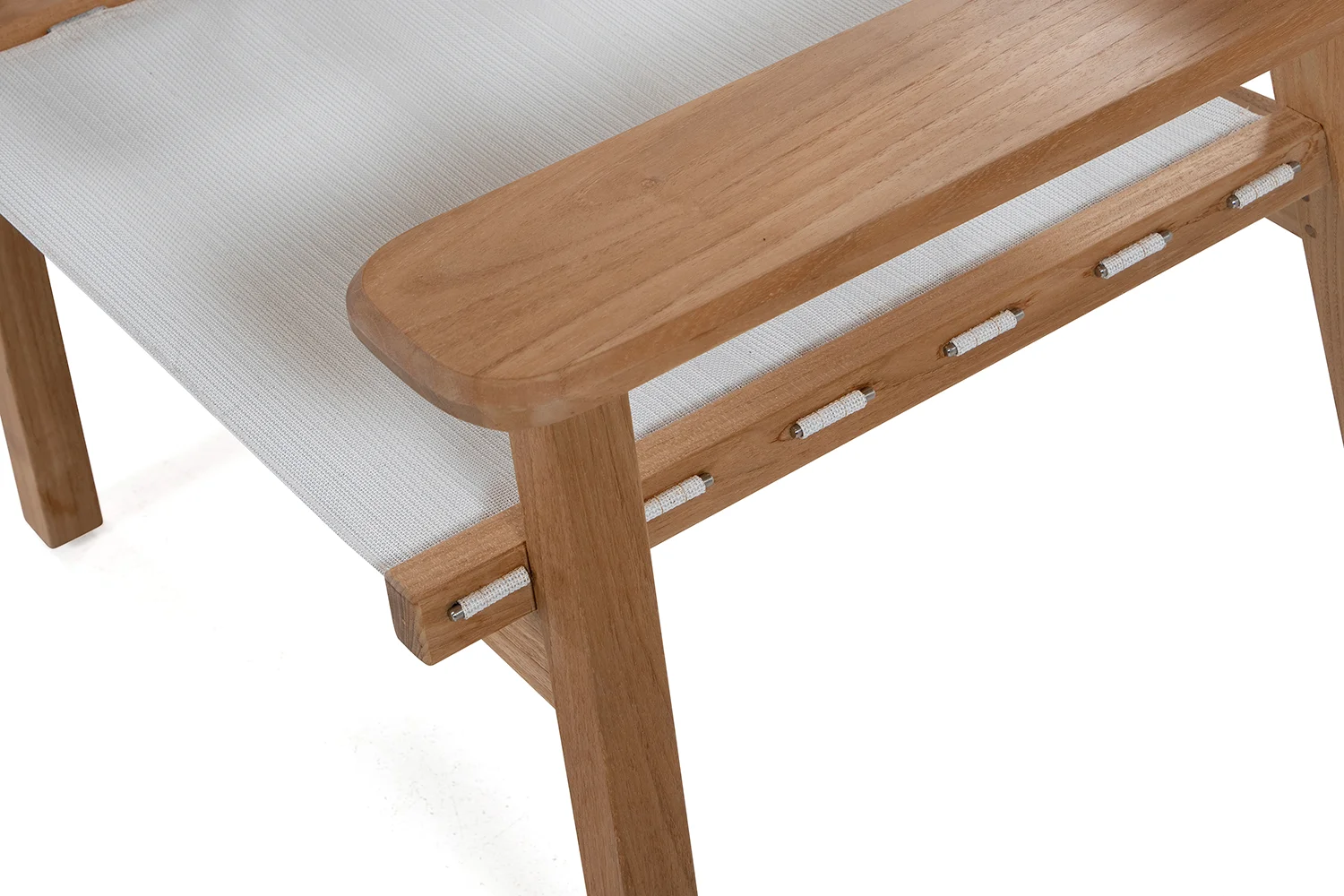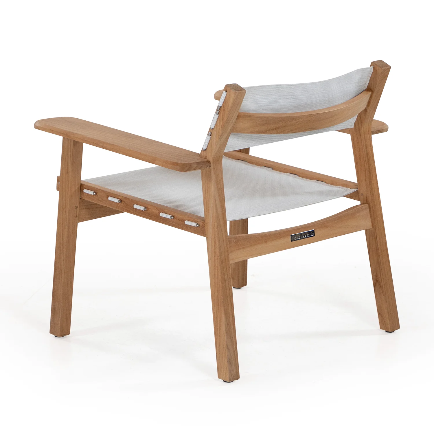 Loungefåtöljen Djurö i teak med sits och ryggstöd i Batyline-textil (en typ av textilen).
