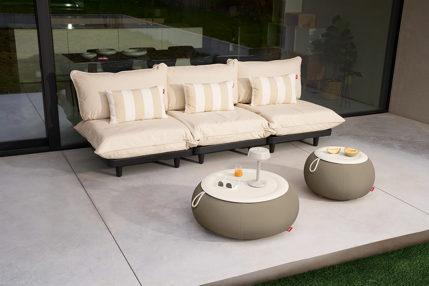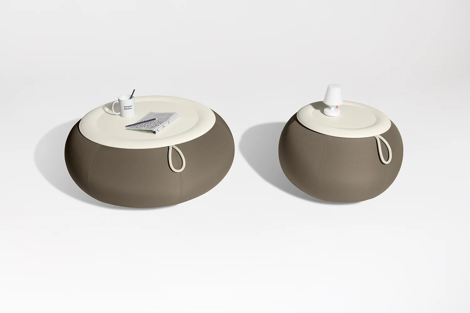 Humpty Outdoor och Dumpty Outdoor är uppblåsbara soffbord för utomhusbruk. Generöst runda och superstabila. Du har aldrig haft en snyggare scen för dina drinkar. Den slitstarka bordsskivan av stål håller allt snyggt på plats. Har du råkat spilla något? Då är det bara att stoppa överdraget i tvättmaskinen. Och eftersom Humpty Outdoor och Dumpty Outdoor är så lätta kan du enkelt flytta runt dem.