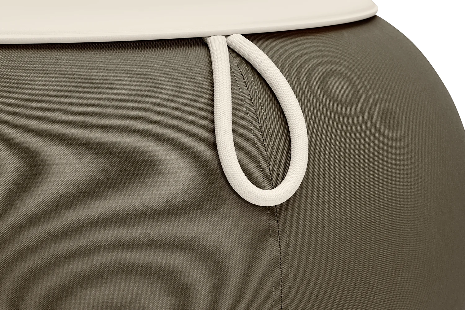 Humpty Outdoor är det höga, smala bordet och Dumpty Outdoor är det lägre, breda bordet. De fungerar bra som duo, men även var för sig. De levereras i en praktisk platt låda och du väcker dem till liv med hjälp av en pump. Använd en kompressor, en handpump eller en fotpump: allt är möjligt. Sedan sätter du bara på överdraget och drar åt det med remmarna i botten. De smarta gummifötterna ger stabilitet och håller bordet en aning ovanför marken. Tack vare det robusta gummimaterialet tappar underredet inte någon luft, såvida du inte vill det förstås. När du är redo att släppa ut luften finns en praktisk, genialisk dragflik i botten som gör saken till en barnlek.