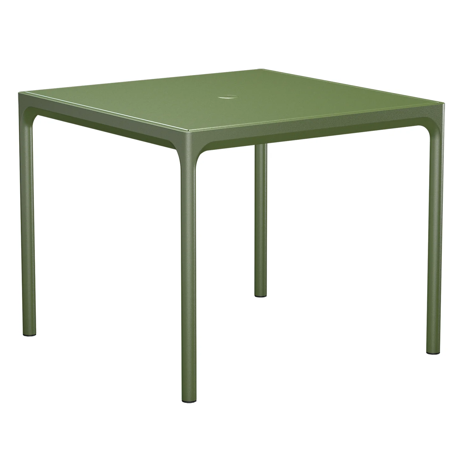 Four är ett matbord med hål för parasoll med bordsskiva i aluminium. Den specialutvecklade extruderade profilen i bordsramen gör FOUR till ett anmärkningsvärt starkt bord.