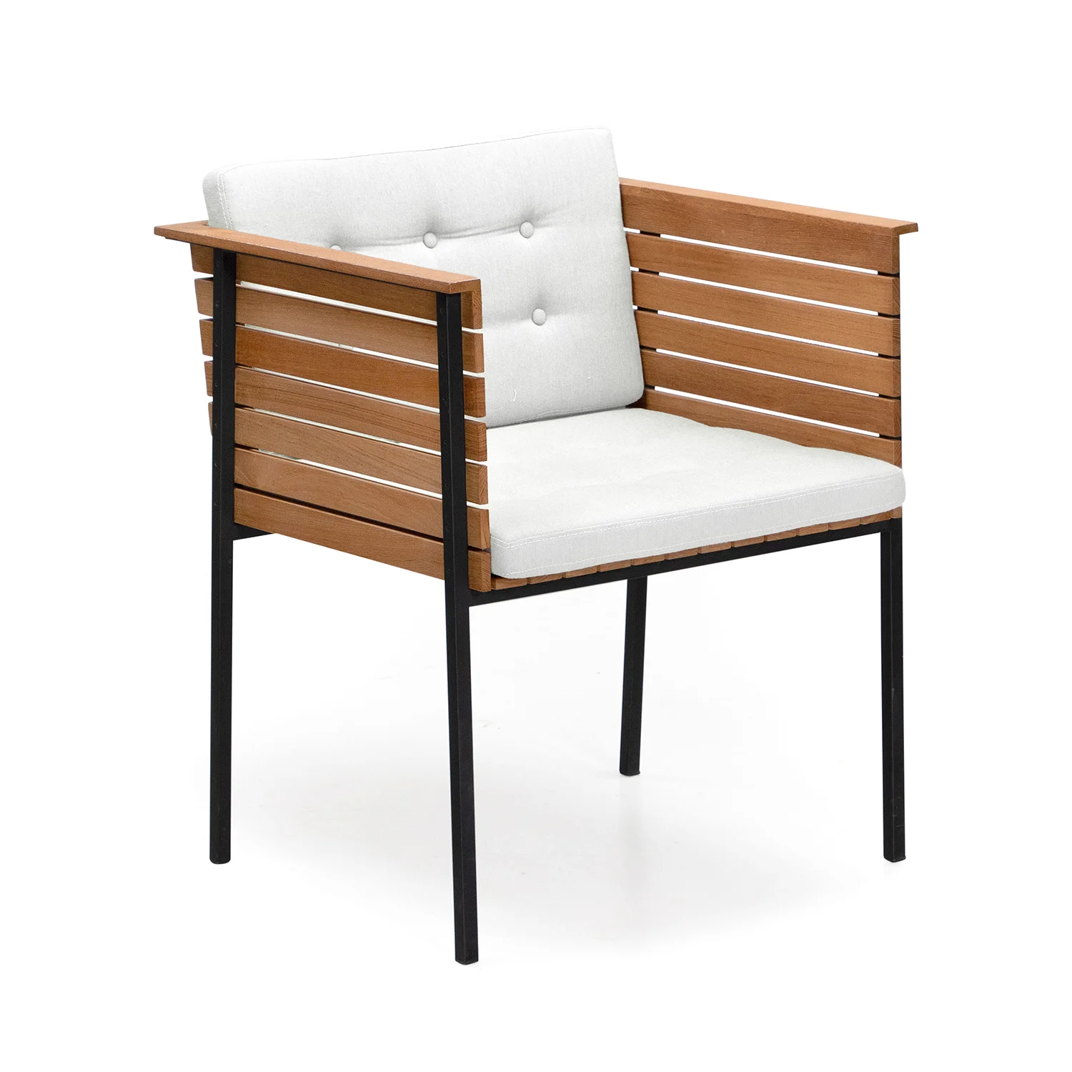 Häringe karmstol i teak och svartlackat stativ med dyna i Sunbrellatyg i färgen vit.