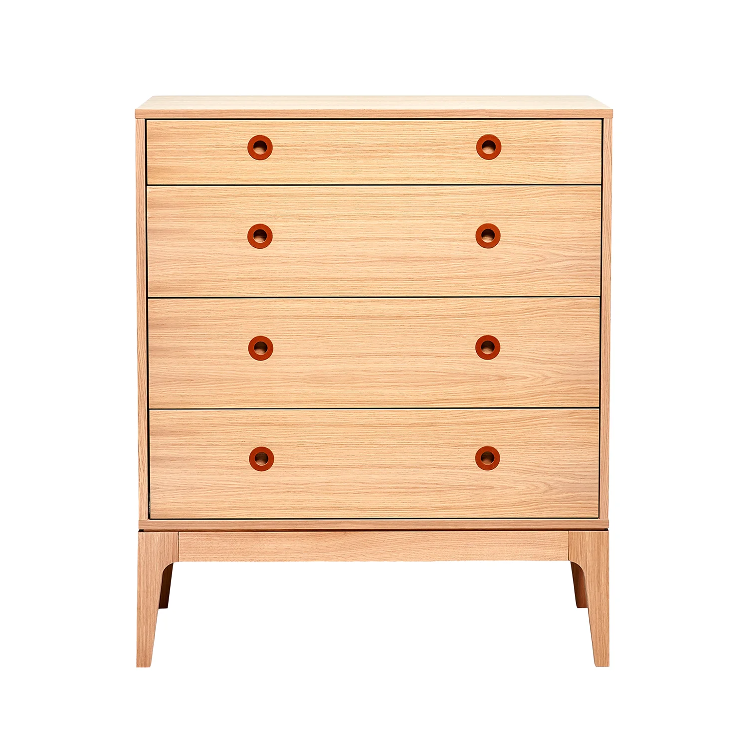 Höllviken byrå med fyra lådor i två olika storlekar. Byrån är tillverkad i Vitpigmenterad ek.