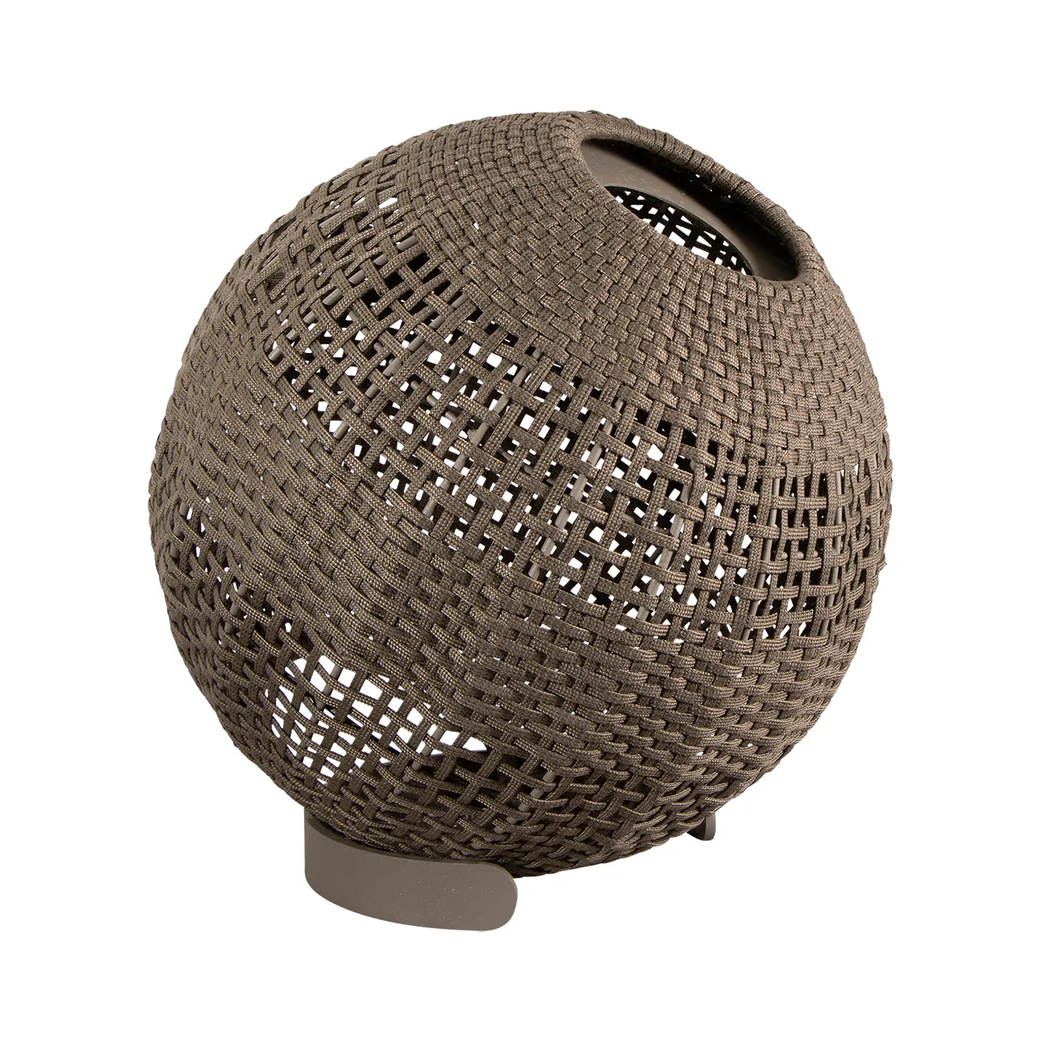 Lampan är tillverkad i slitstarka och väderbeständiga Cane-line Soft Rope och har en avtagbar LED-solcellsenhet med olika ljusinställningar som kan justeras med fjärrkontrollen. Du kan leka med ljuset, eftersom lampan kan placeras på olika sätt på basen och skapa olika ljusmönster. Detta ger ett lekfullt och hemtrevligt ljus till utrymmet.