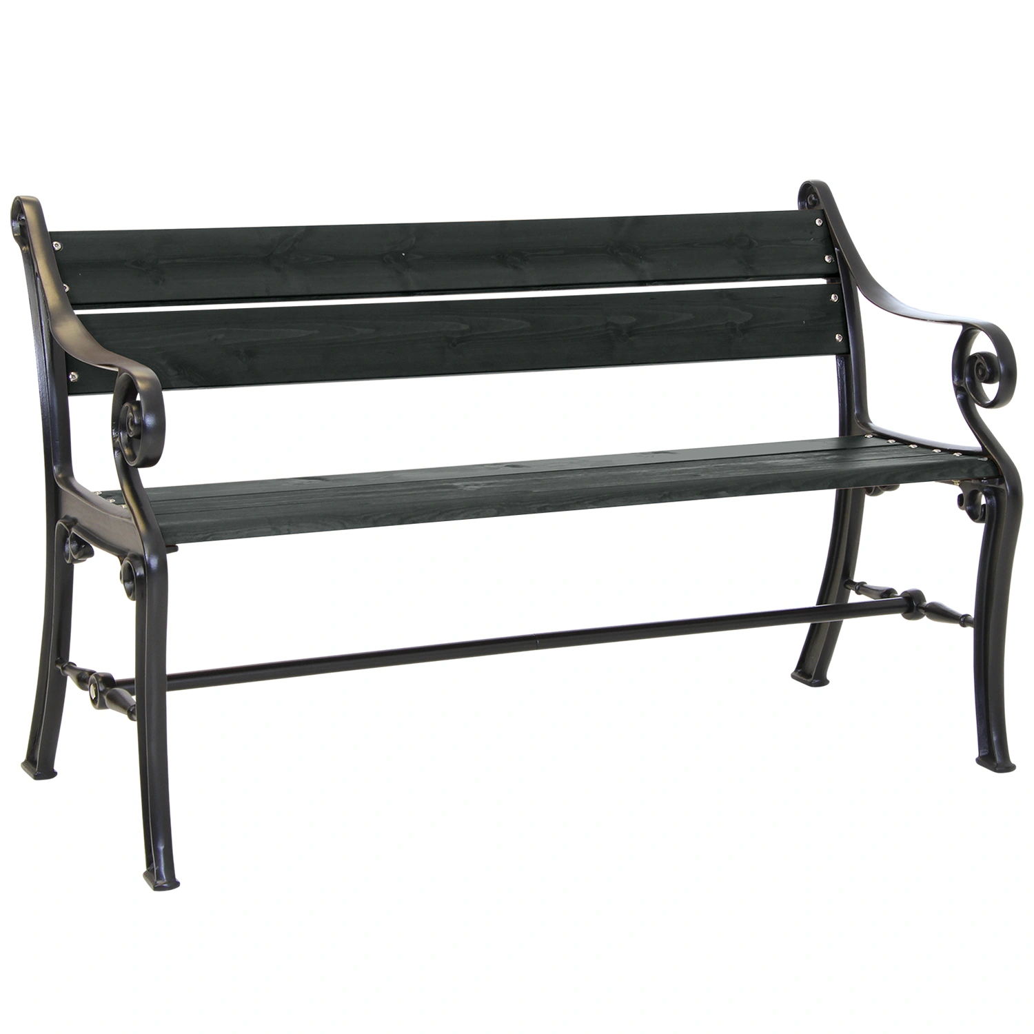 En klassisk soffa med dekorativa gavlar i gjuten aluminium som kombineras med vacker furu i sittdelen. De smäckra gavlarna är svarta och trädetaljerna är svartlaserade.