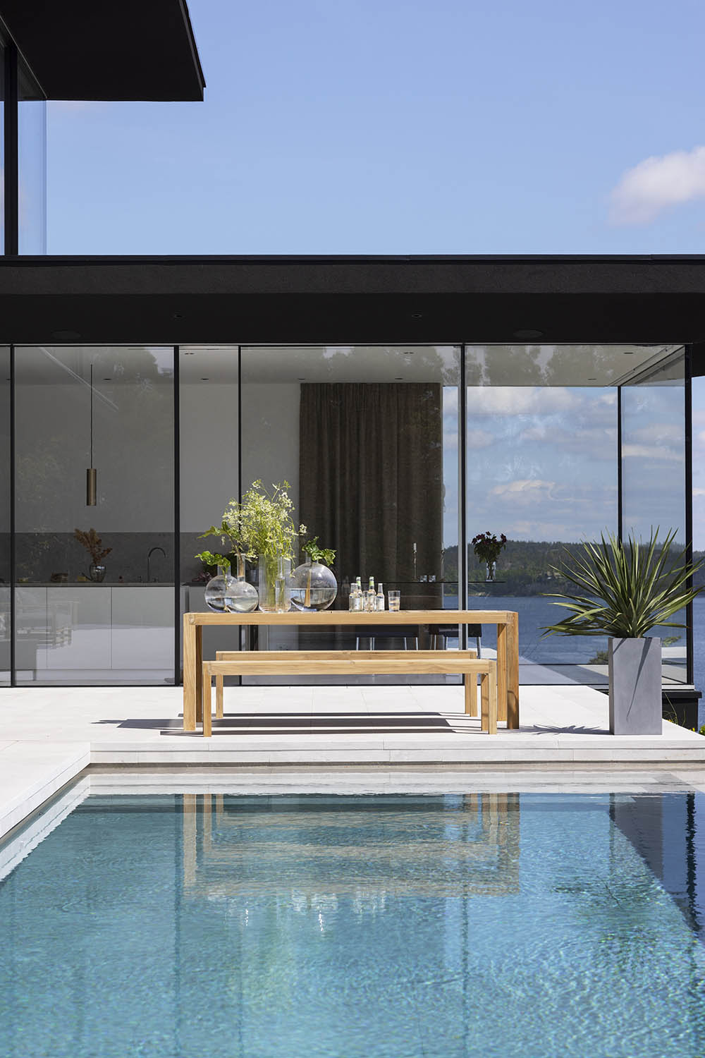 Laknäs matbord är ett raffinerat och minimalistiskt matbord i teak. Välgjort och elegant och fungerar lika bra inomhus som utomhus.