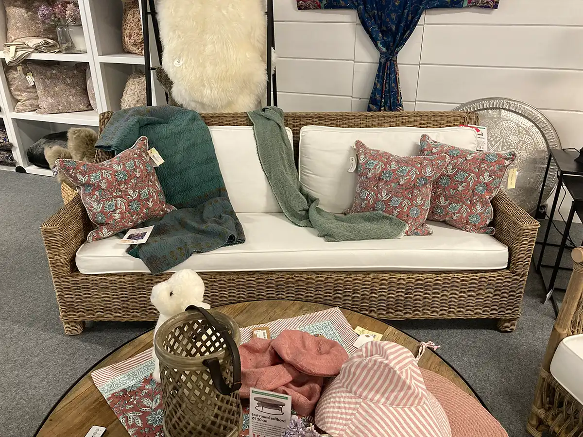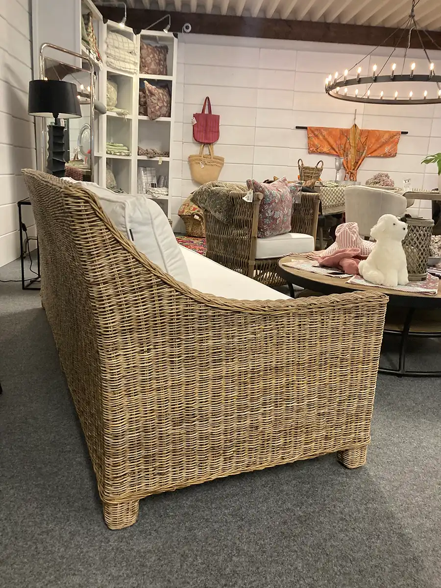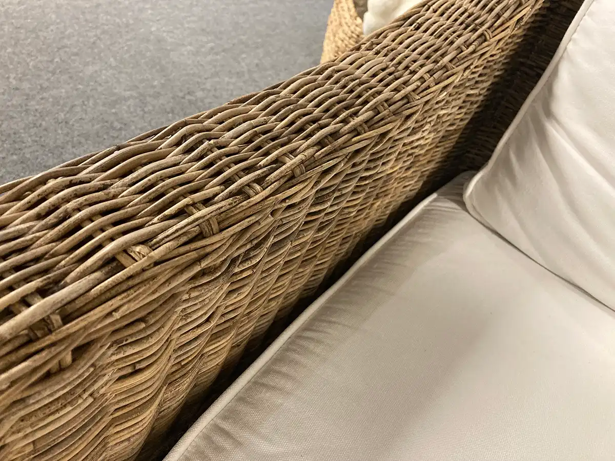 Madison rottingsoffa från Artwood är flätad men den tunnare rottingen Lacak Grey som växer i flod och träskmarker. Den naturliga färgen är gulvit, den grå färgen kommer först efter att den färgas in genom att rottingen blötläggs i lera under en månads tid. Under denna process tillsätts inga kemikalier. Vid exponering av starkt solljus kan rottingen blekas något och vanligtvis blir den då gråare.
