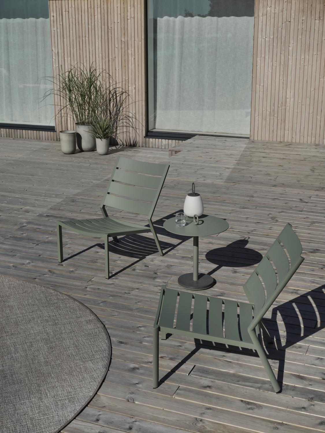En perfekt avställningsyta bredvid vilstolen, solsängen, loungegruppen eller i trädgården – Niobe tar du enkelt med dig tack vare den dekorativa och stadiga ringen i bordsskivan. Foten i kompositsten gör att bordet står stadigt var du än placerar det.