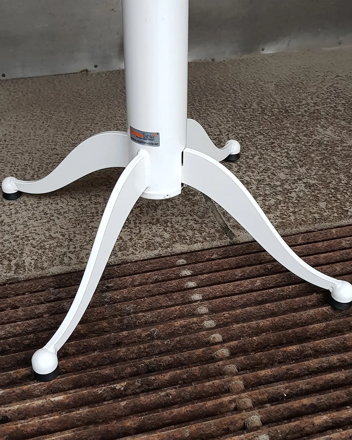 Inuti pelaren väl skyddat från yttre påverkan sitter det helt mekaniska systemet som gör att 2 av benen kan röra sig och anpassa sig efter underlaget medan 2 ben sitter fast och säkerställer rätt höjd på bordet. Genom denna unika egenskap, tar borden bort ca. 50% av lutningen och borden ställer sig mycket jämnare bredvid varandra. Använd StableTable ute eller inne året runt på alla typer av underlag.