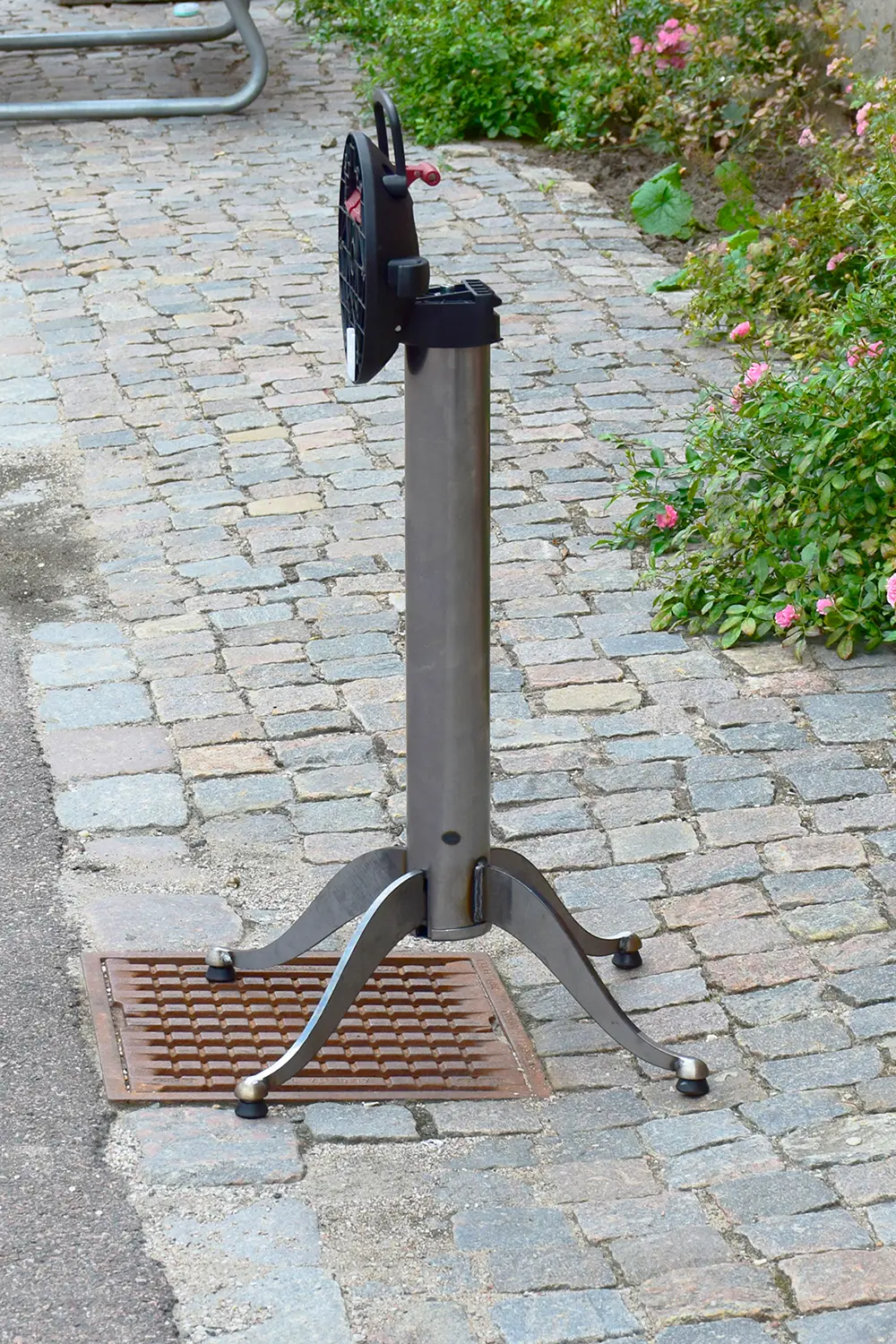 Inuti pelaren väl skyddat från yttre påverkan sitter det helt mekaniska systemet som gör att 2 av benen kan röra sig och anpassa sig efter underlaget medan 2 ben sitter fast och säkerställer rätt höjd på bordet. Genom denna unika egenskap, tar borden bort ca. 50% av lutningen och borden ställer sig mycket jämnare bredvid varandra. Använd StableTable ute eller inne året runt på alla typer av underlag.