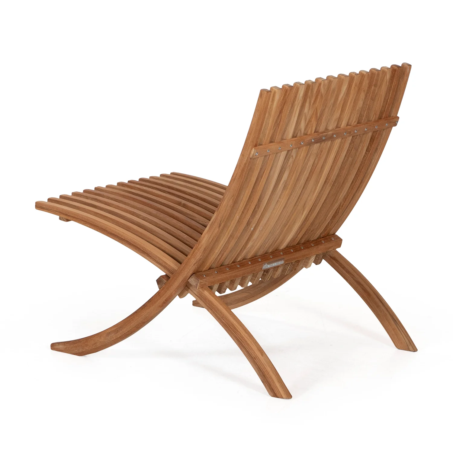 Nils-Ole Zib gav stolen sina initialer. Tänk på det. Något som du döper efter dig själv är något du är nöjd med, och det är helt rätt i det här fallet. Nils-Oles filosofi kan beskrivas som en slags ortodox tolkning av ”less is more”. Spänning, säger han, uppstår när allt som inte är väsentligt skalas ner till en punkt där man inte kan ta bort något annat. Nozib bevisar detta synsätt på ett perfekt sätt. Den består av skiktlimmade trälameller, vackert välvda, perfekt monterade. Det är en solstol. Men den är utrustad för att tåla regn och ogynnsamma förhållanden. Från skruvarna som håller ändträet borta från marken, till de böjda trälamellerna som är förseglade med ett tvåkomponentslim som ursprungligen utvecklades för att tillverka båtar, och nackkudden som är gjord av konstläder.