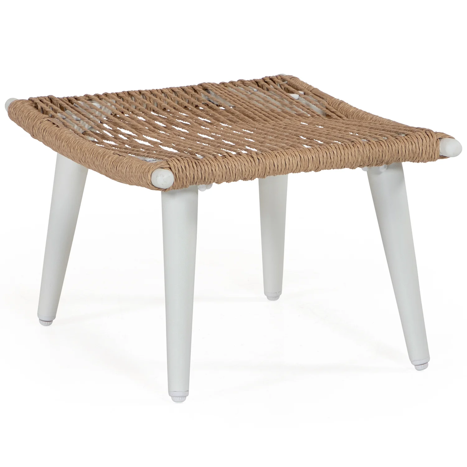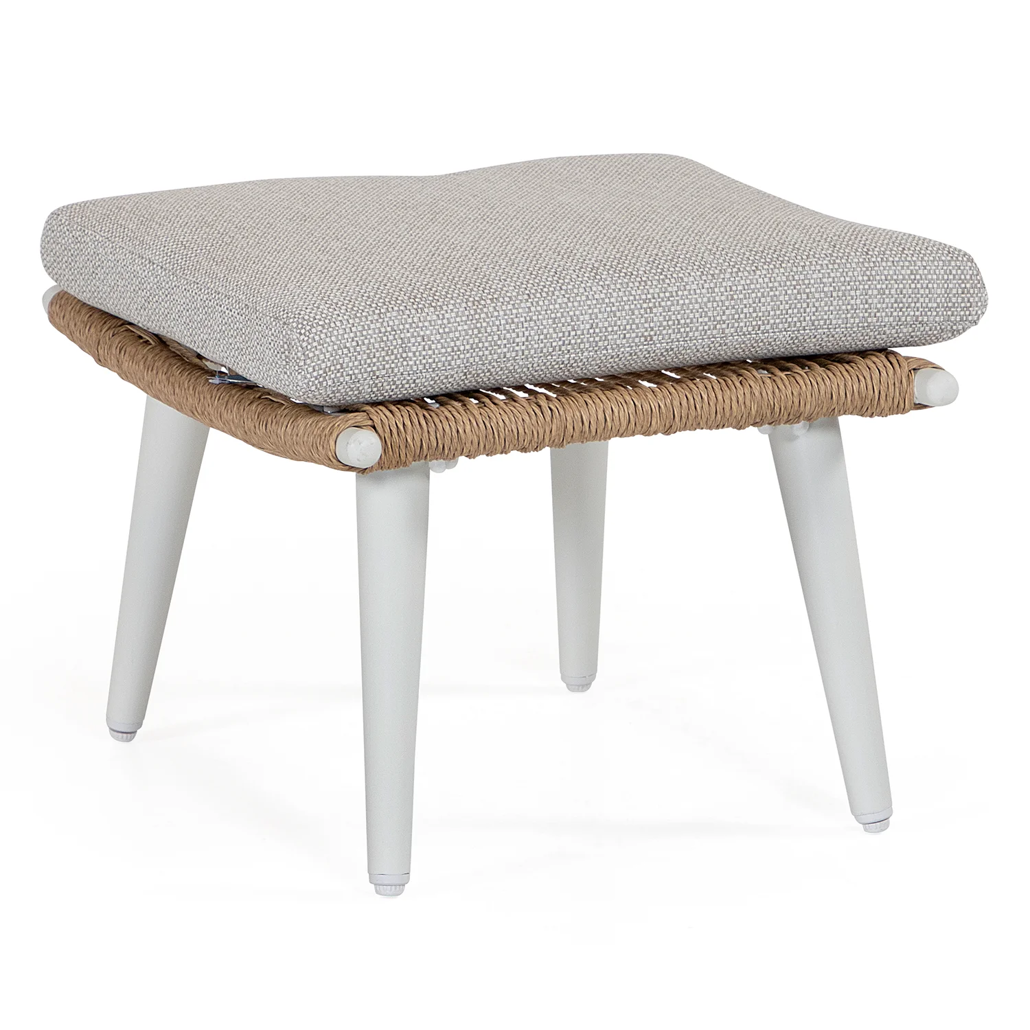 Fåtöljen kommer inklusive matchande fotpall. I samma serie finns flera möbler i samma stuk, med samma cremefärgade stomme och tvinnade rotting. Bland annat finns soffgrupper, matstolar och bord.
