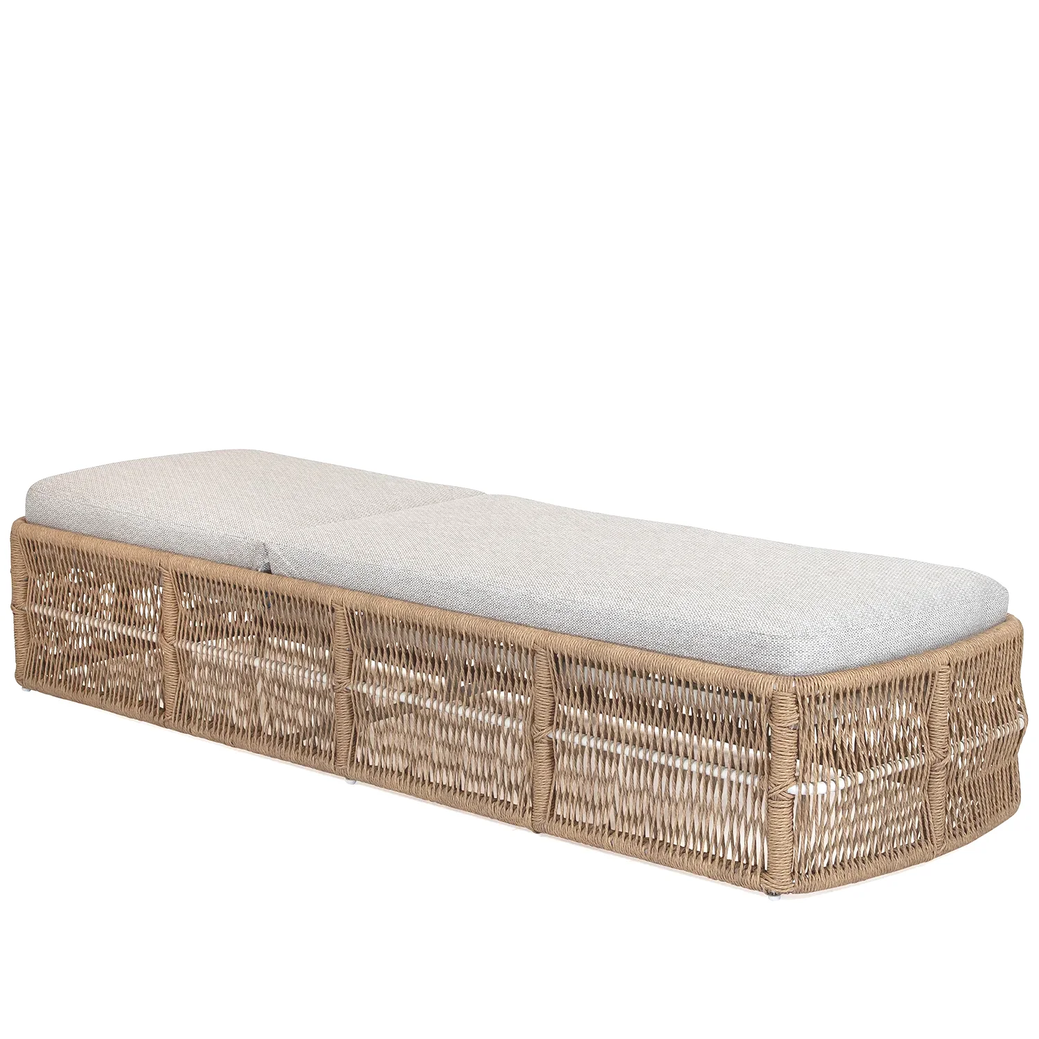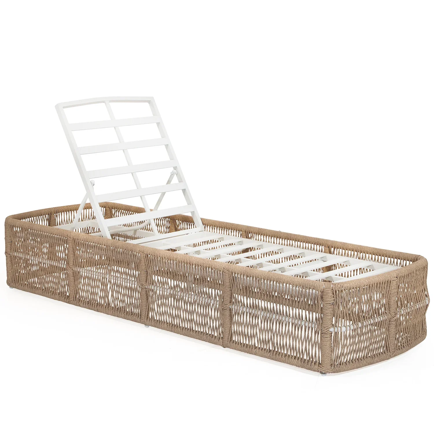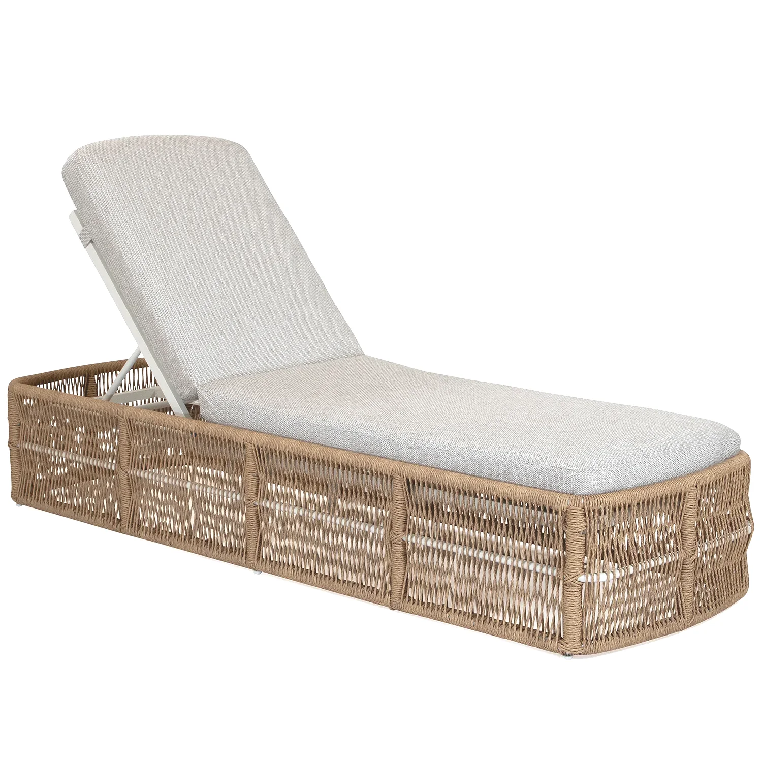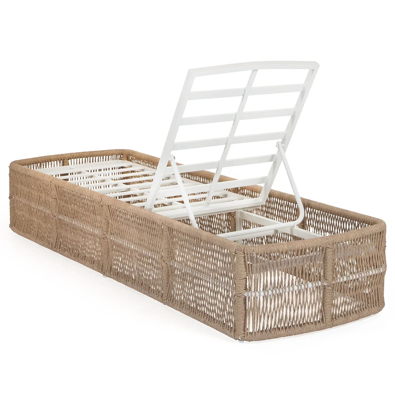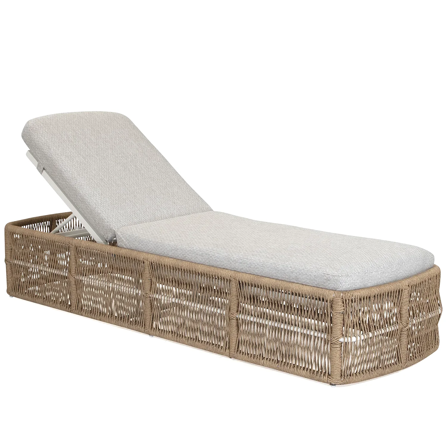 Olivia solsäng från Atleve. Solsängen är tillverkad i naturfärgad twistad konstrotting på en stomme av ljusbeige aluminium. Ryggen är ställbar i flera lägen. Dynan är en allvädersdyna i beige.