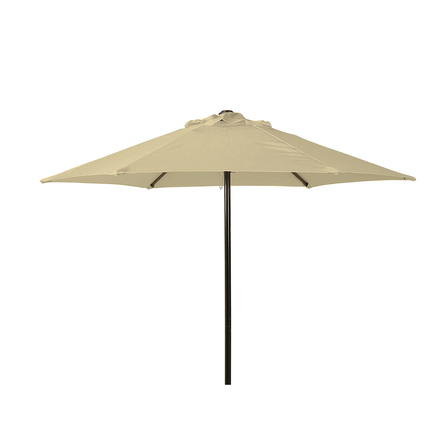 Parasoll i beige polyester med en tygvikt på 180g/m2. Svart stång i stål med svarta spröt. Stång Ø35 mm.
