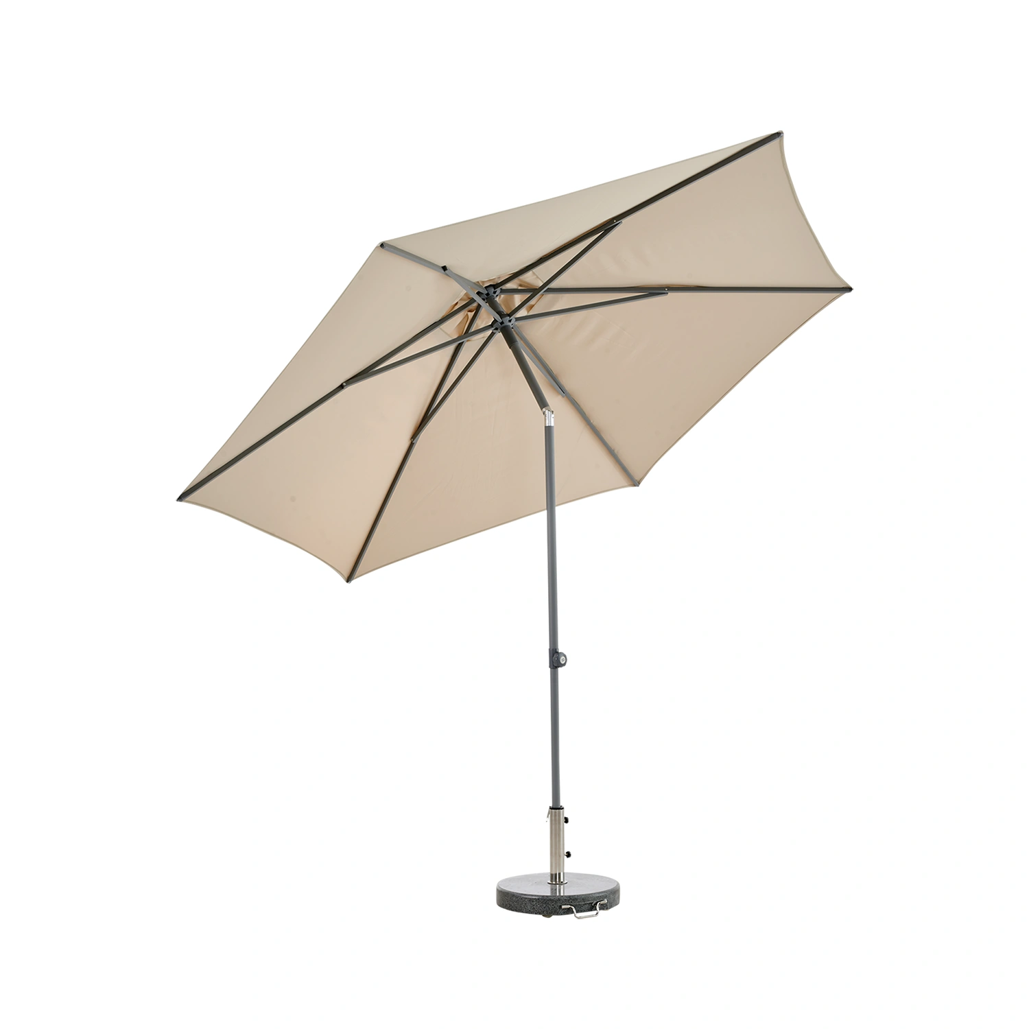 Poppi parasoll i färgen champagne i storleken 300 cm. Denna största variant av Poppi-parasollet är tiltbart och ger gott om skugga.