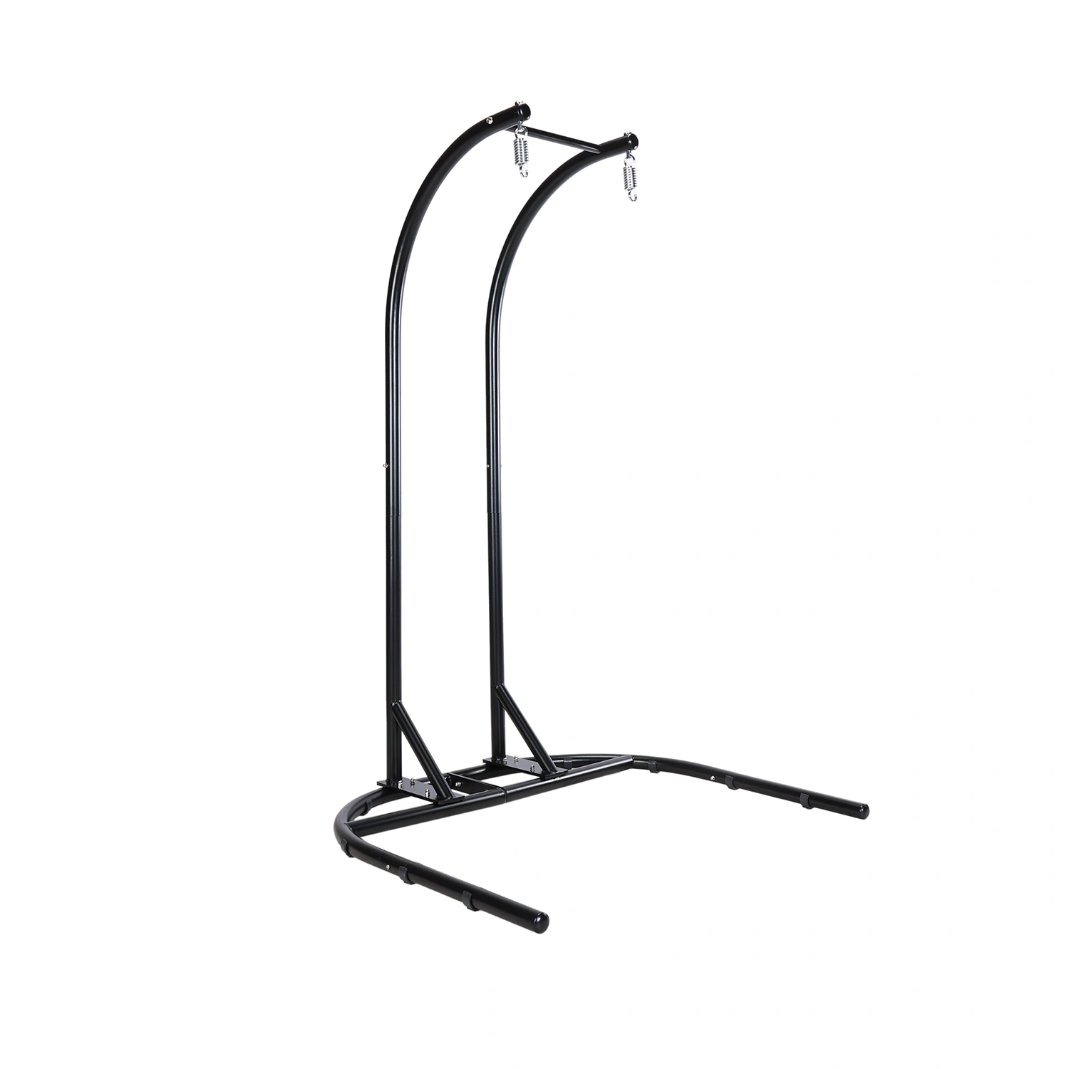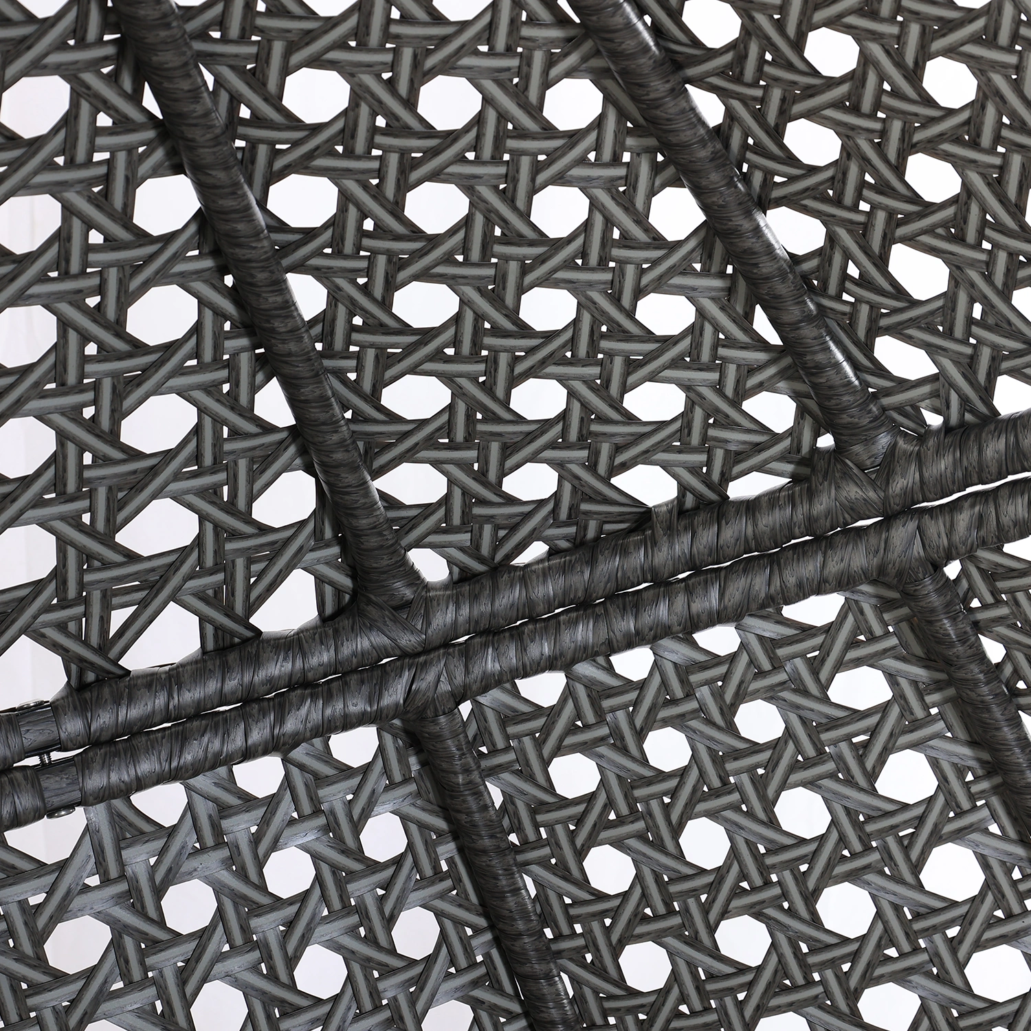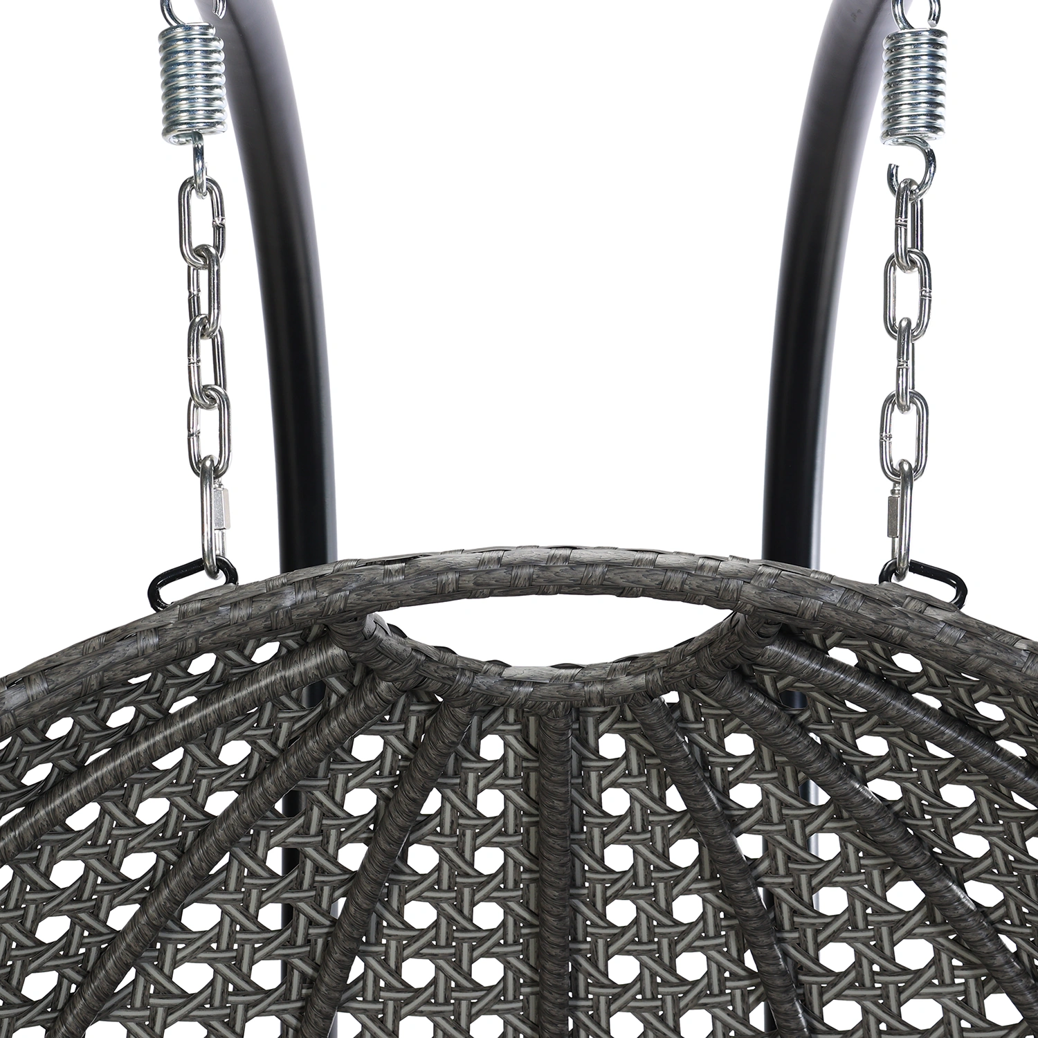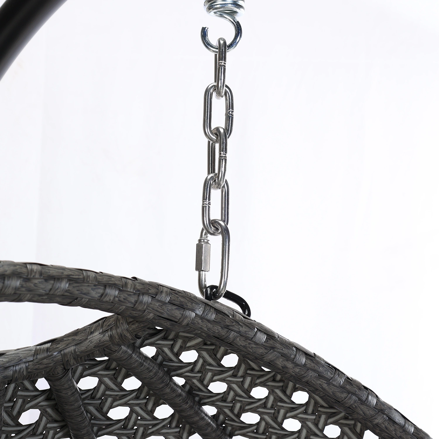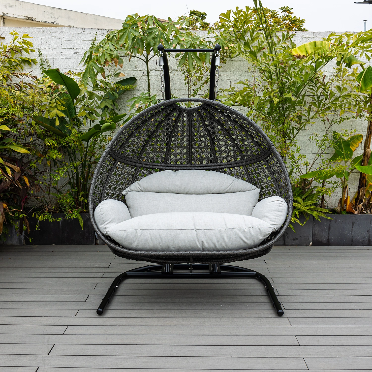 Hänggunga med plats för två personer. Gungan är tillverkad i stål med flätning i konstrotting, stativet i svartlackerat stål. Dynor i beige Olefintyg ingår.
