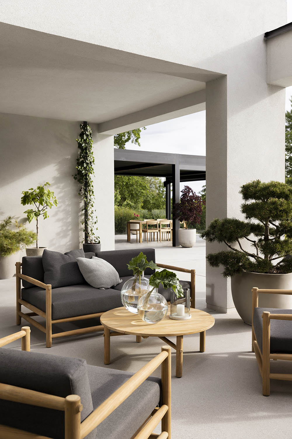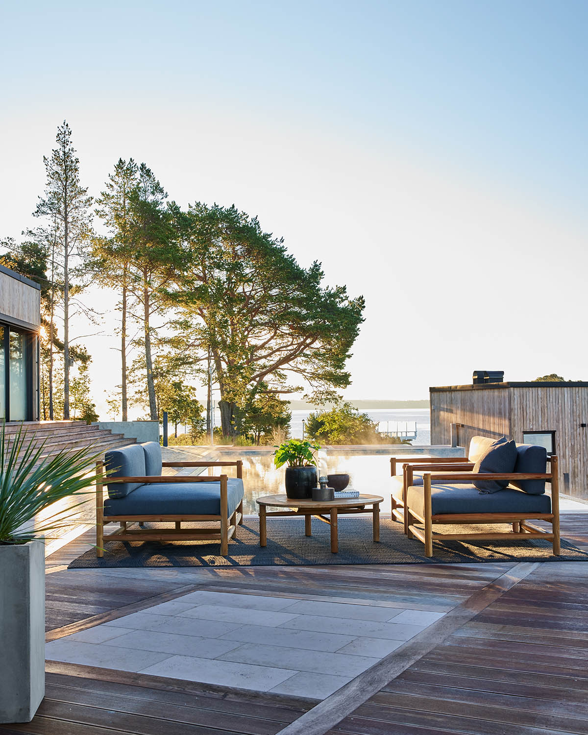 I havet mellan Köpenhamn och Malmö ligger ön Saltholm. Sexton kvadratkilometer öde, dansk landsbygd. En handfull människor bor här under ganska spartanska förhållanden. De har åtminstone sällskap av cirka femhundra kor. Kråkvägen är det inte ens tio kilometer till både Köpenhamns och Malmös centrum. Total avskildhet, total närhet. Vi utformade vår loungeserie Saltholm för att försöka fånga den dubbla känslan. Att vara nära och ändå långt borta. Nära Cava och goda vänner, en kväll i juni när solen inte riktigt går ner. Långt ifrån vardagens stress.