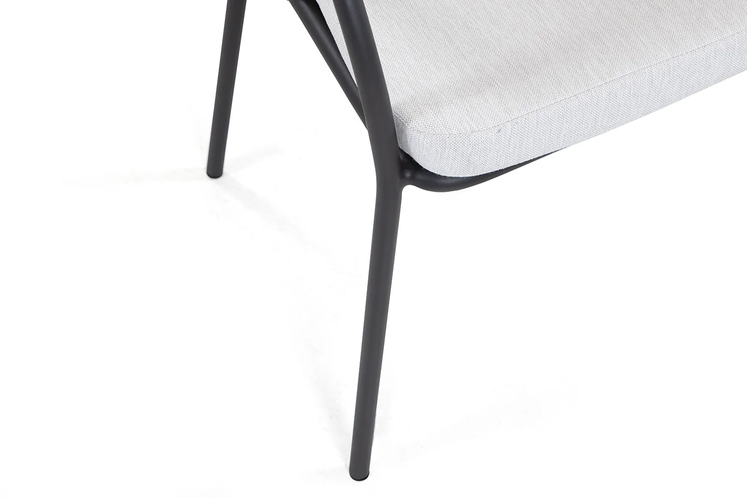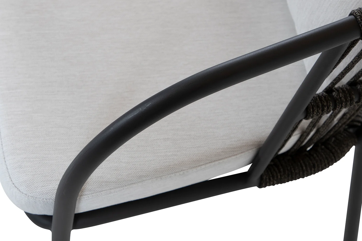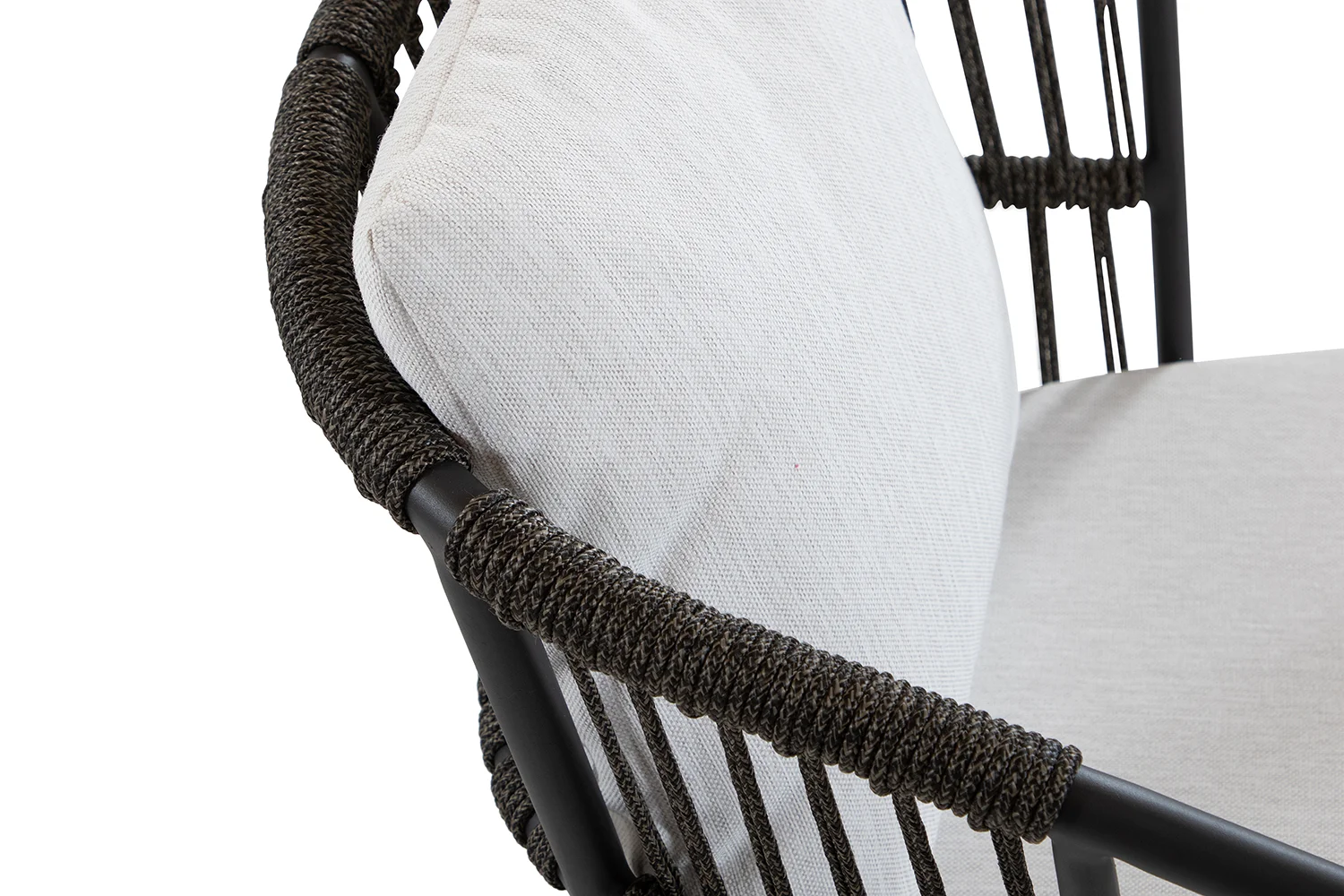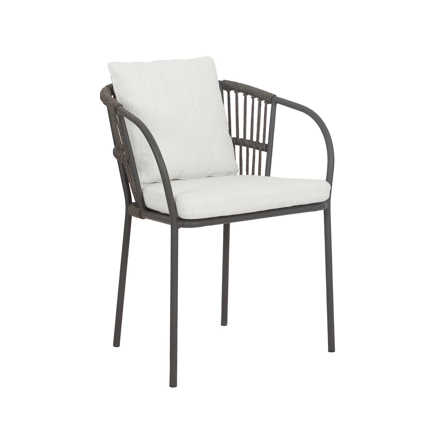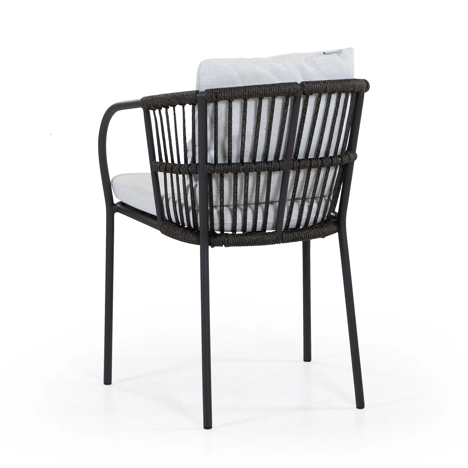 Saltö matstol mörkgrå stomme med rep sits, kudde ingår. Saltöstolen har tidigare funnits helt i aluminium, Saltö med sits och rygg i rep är ny för säsongen 2023.