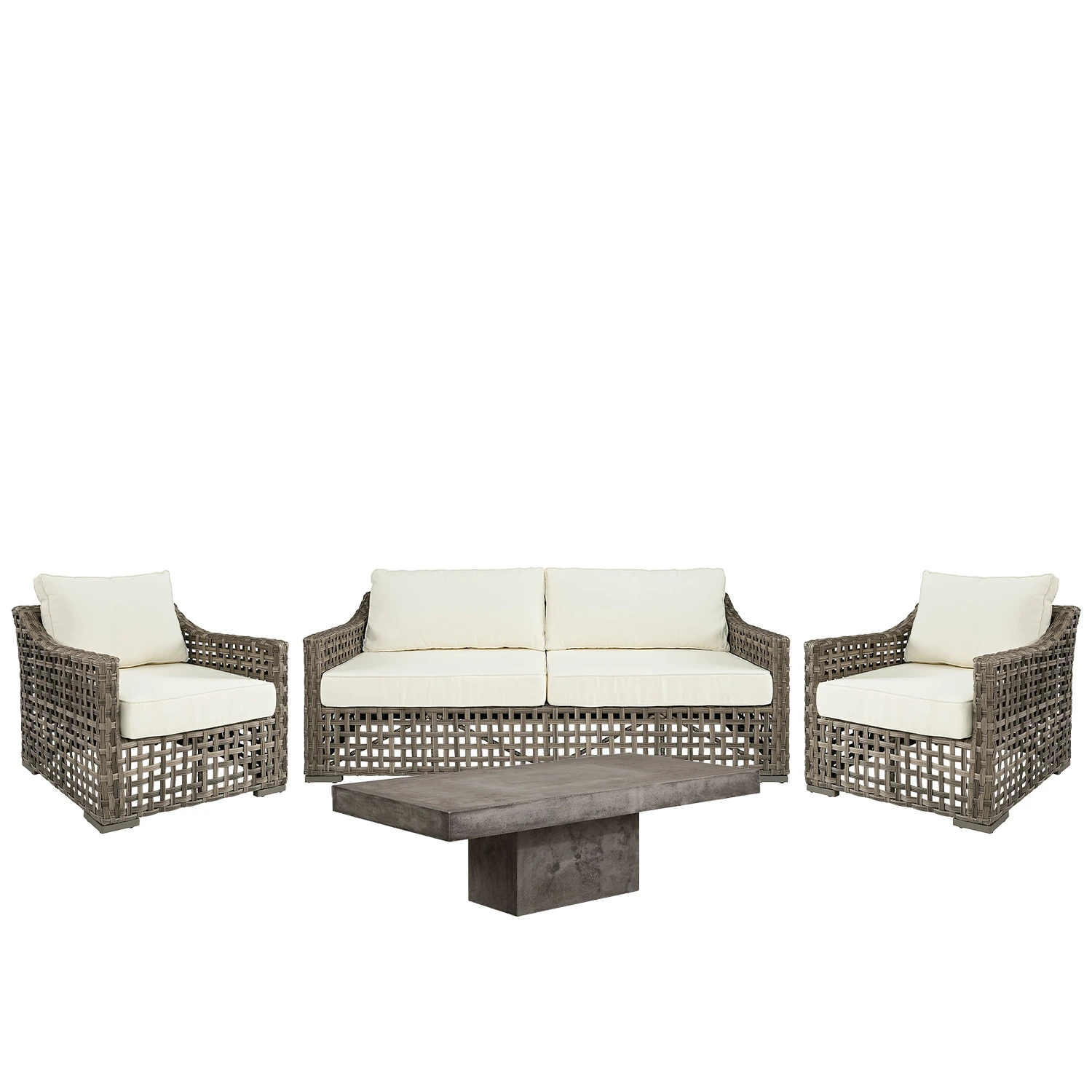 San Remo är tillverkad i den breda väderbeständiga konstrottingen Classic Grey som ger ett modernt och luftigt utseende. Soffan finns antingen som 2,5-sits eller 3-sits, fåtöljen kan bytas ut mot en Key Largo loungefåtölj med lägre karm.