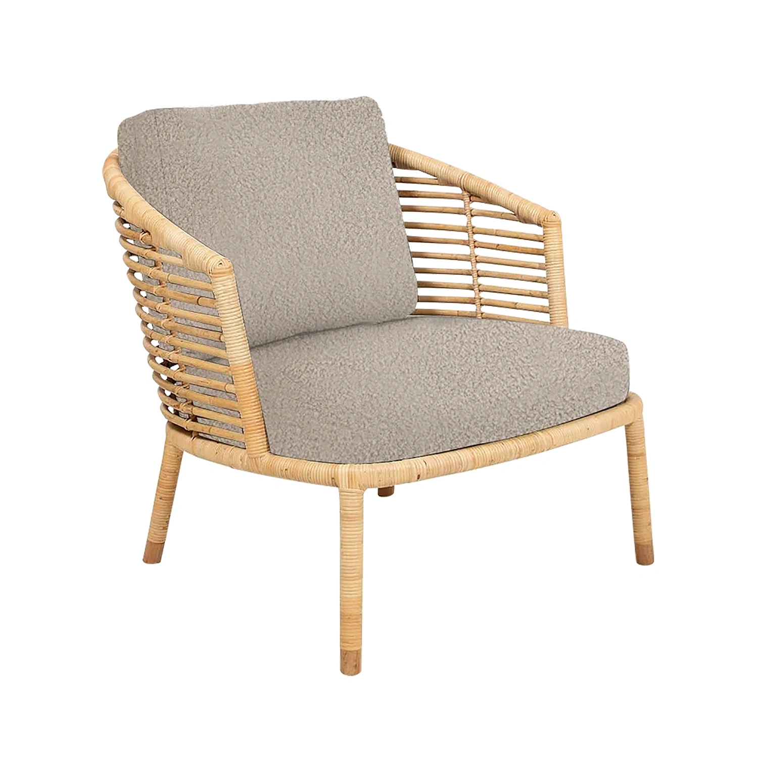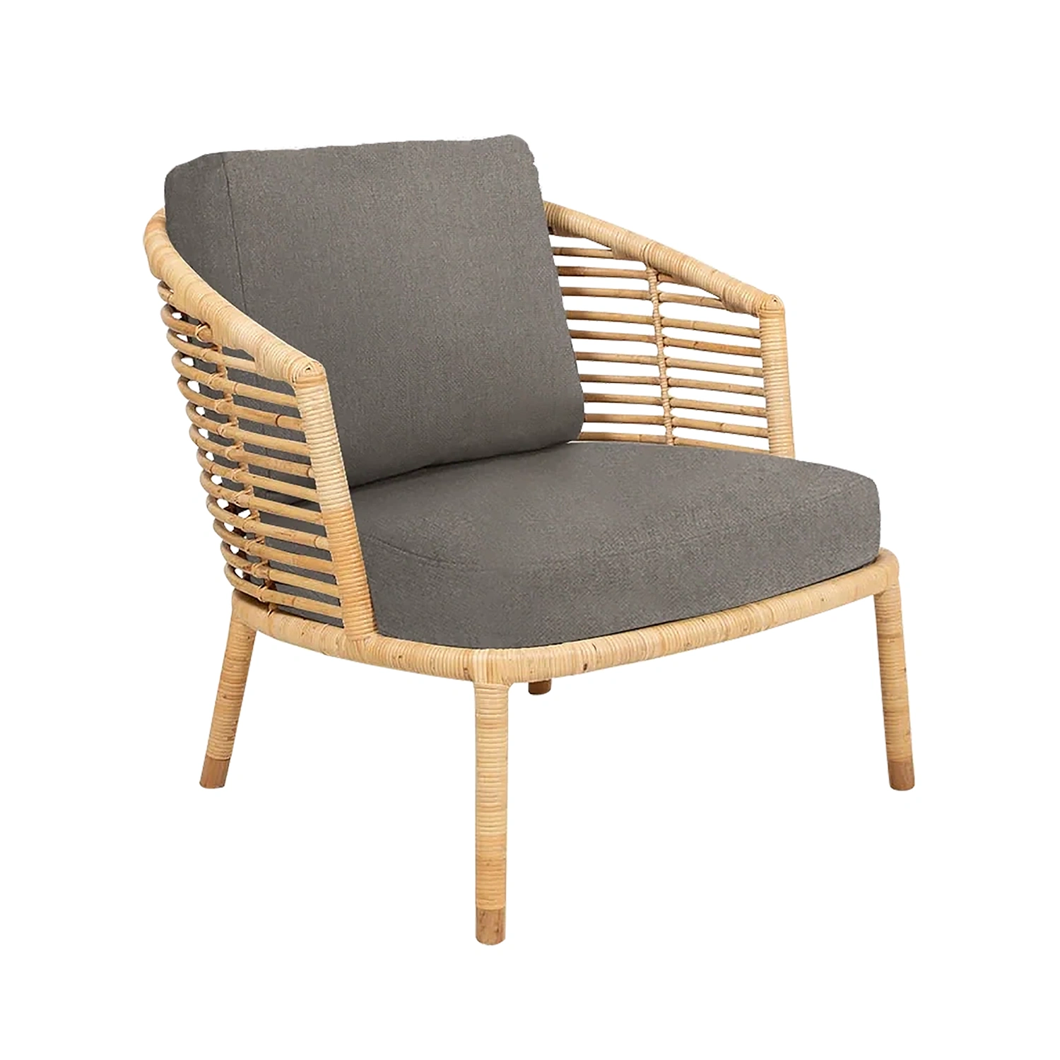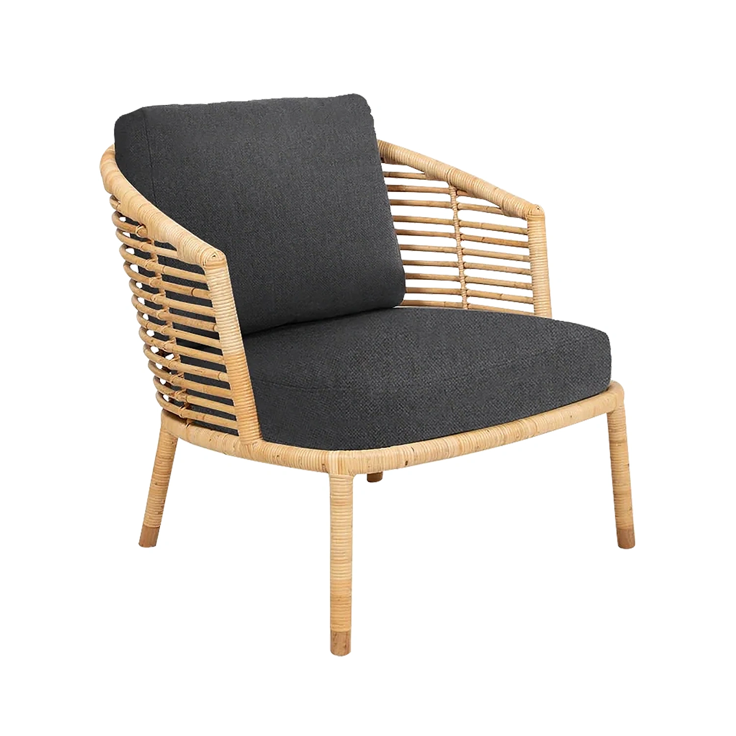 Fåtöljen Sense är handgjord av naturlig rotting och finns i naturfärgad och svart. Tyget är allergivänligt, tåligt och enkelt att rengöra och underhålla. De bekväma kuddarna finns i olika exklusiva tyger, alla varianter erbjuder en bekväm och mjuk känsla. Kontakta oss för färgprover.