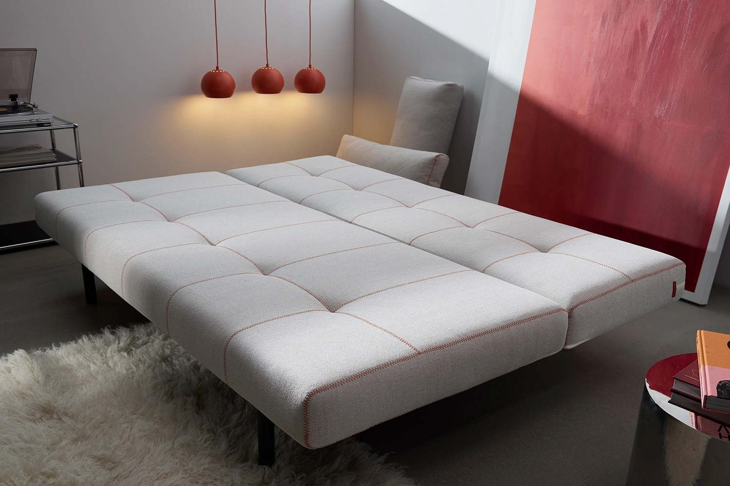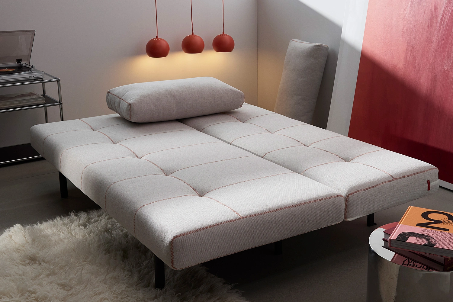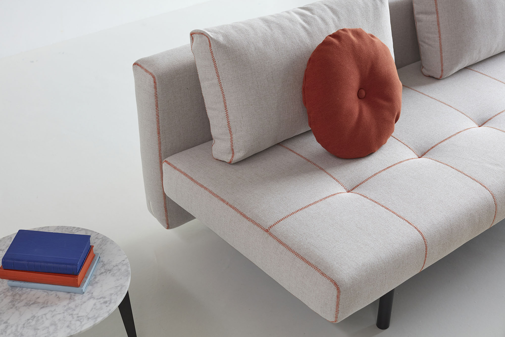 Innovation Livings designers har tidigare arbetat med dekorativa sömmar och blev inspirerade att återuppta detta tema när de såg ”Everyday Life”, ett samarbete mellan Paul Smith och De Padova som sakkunnigt använder sig av dekorativa sömmar. Sigga X bäddsoffan görs om till en 190×137 cm säng och är en av de mest prisvärda medlemmarna i Slyder-familjen.