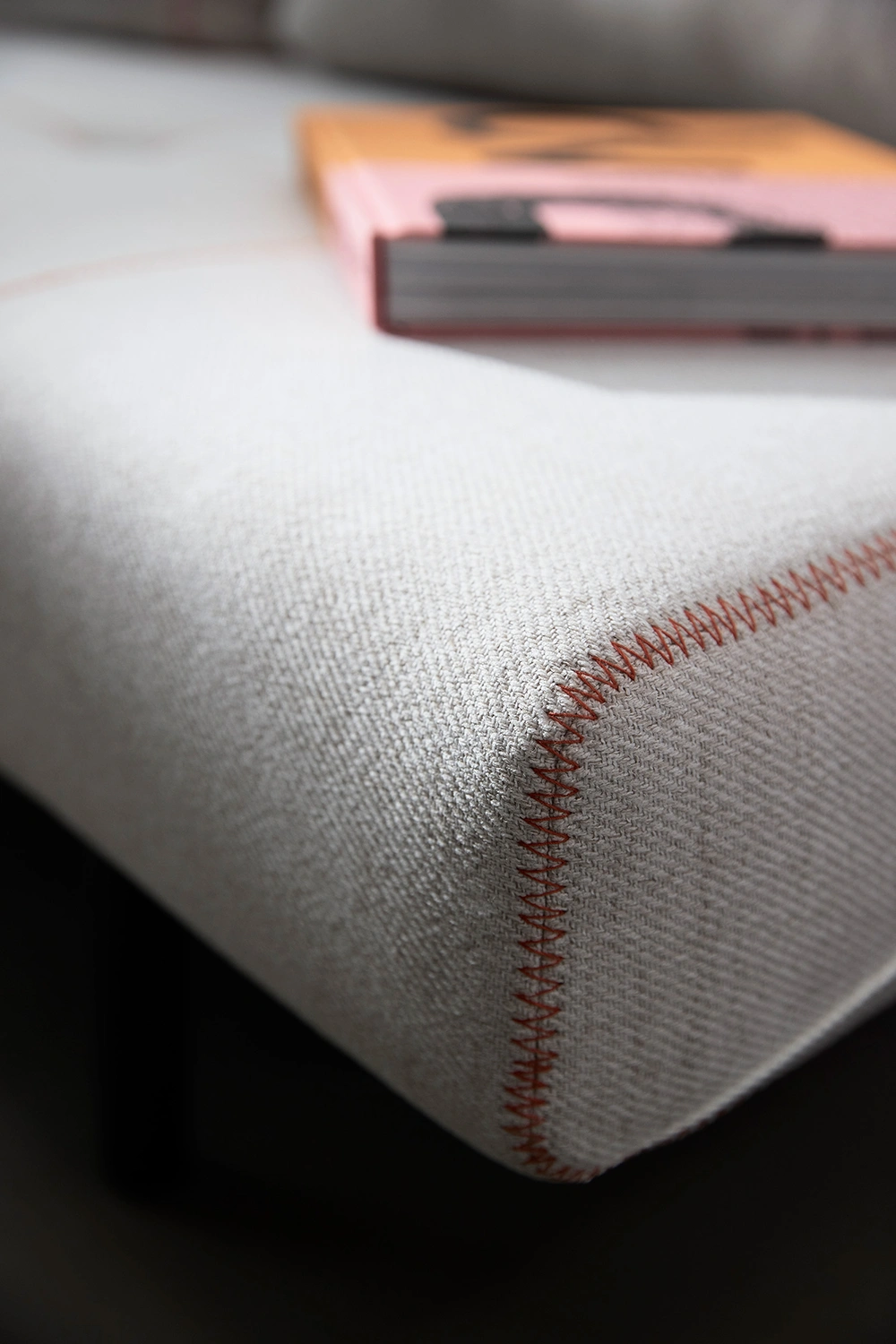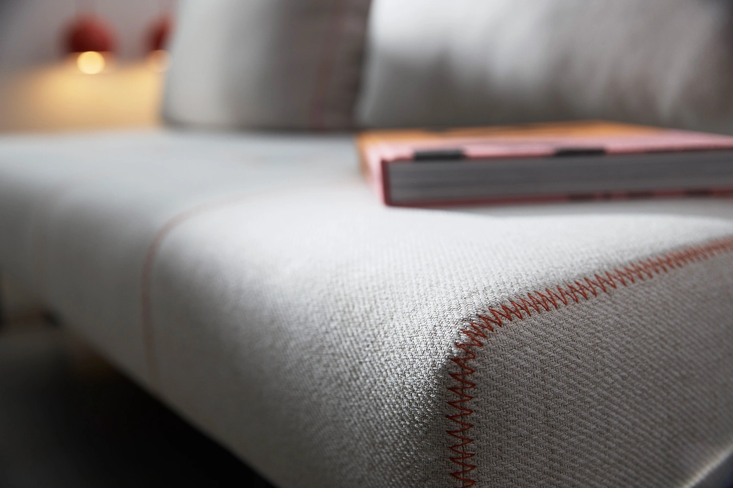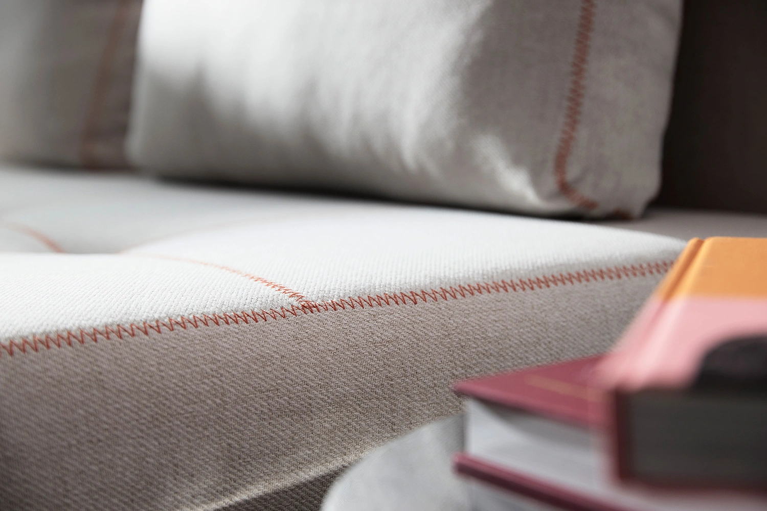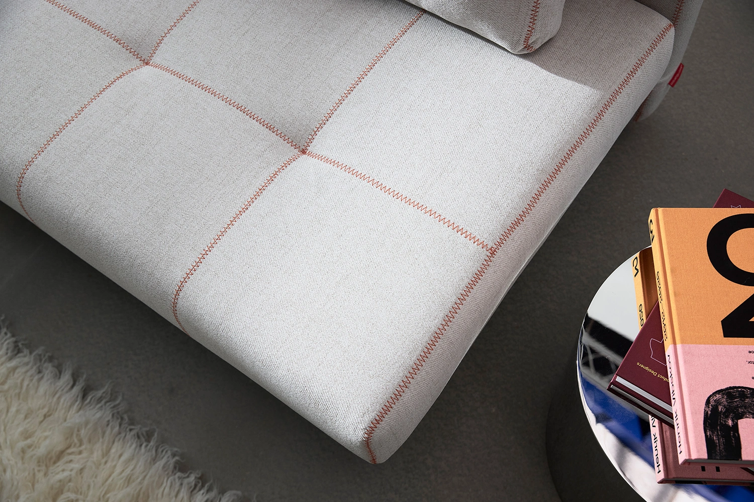 Sigga X är en bäddsoffa med sömnadsdetaljer inspirerade av Paul Smith och De Padova. Mönstren med sicksacksömmar är sofistikerad detalj som gör skillnad.