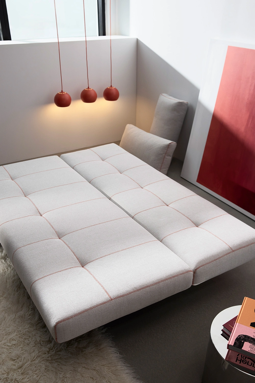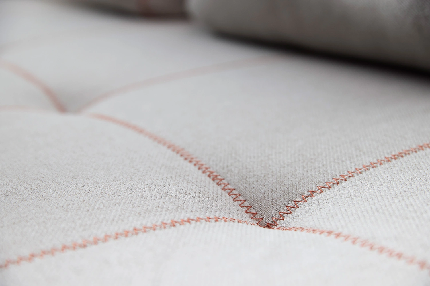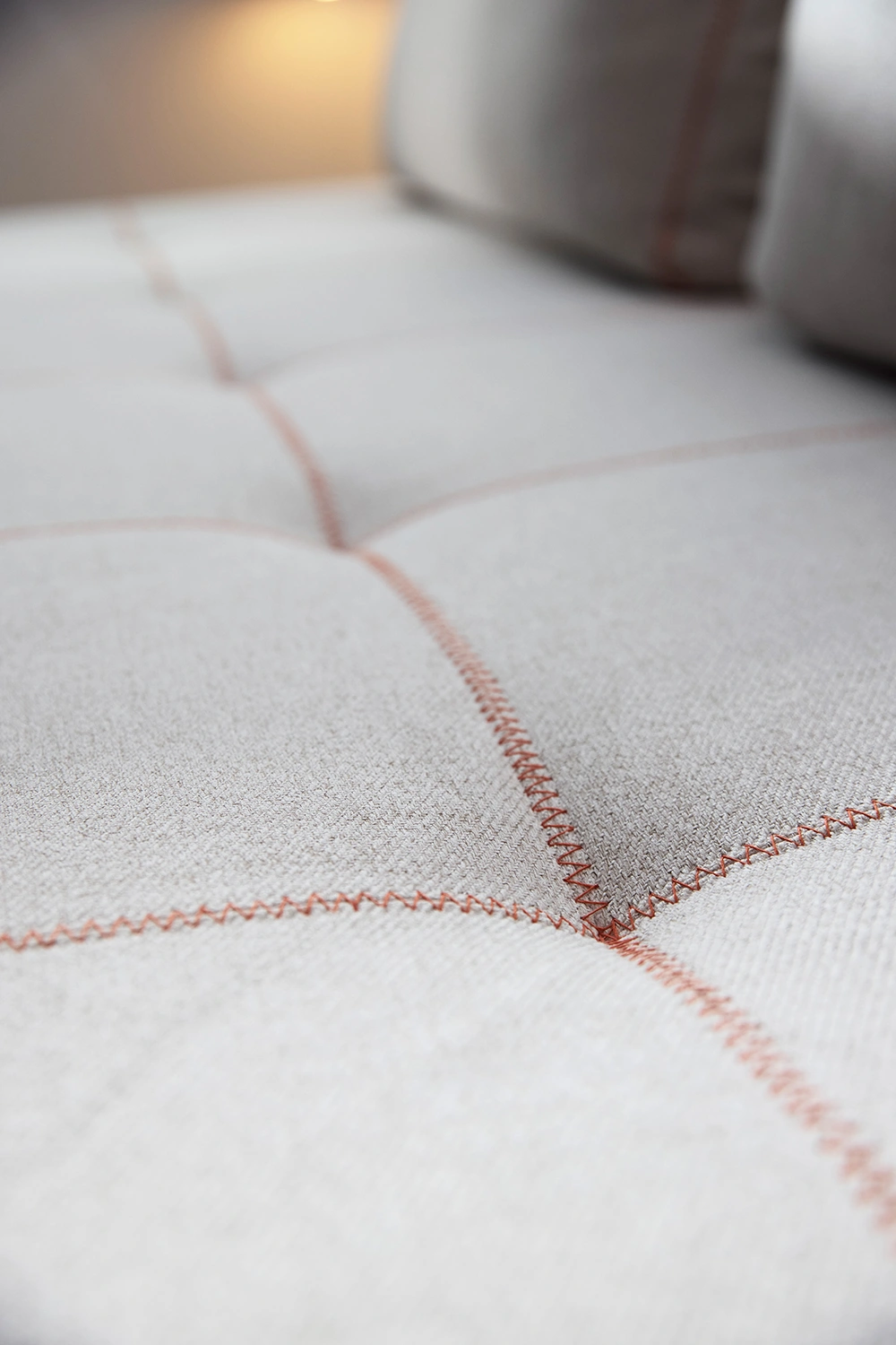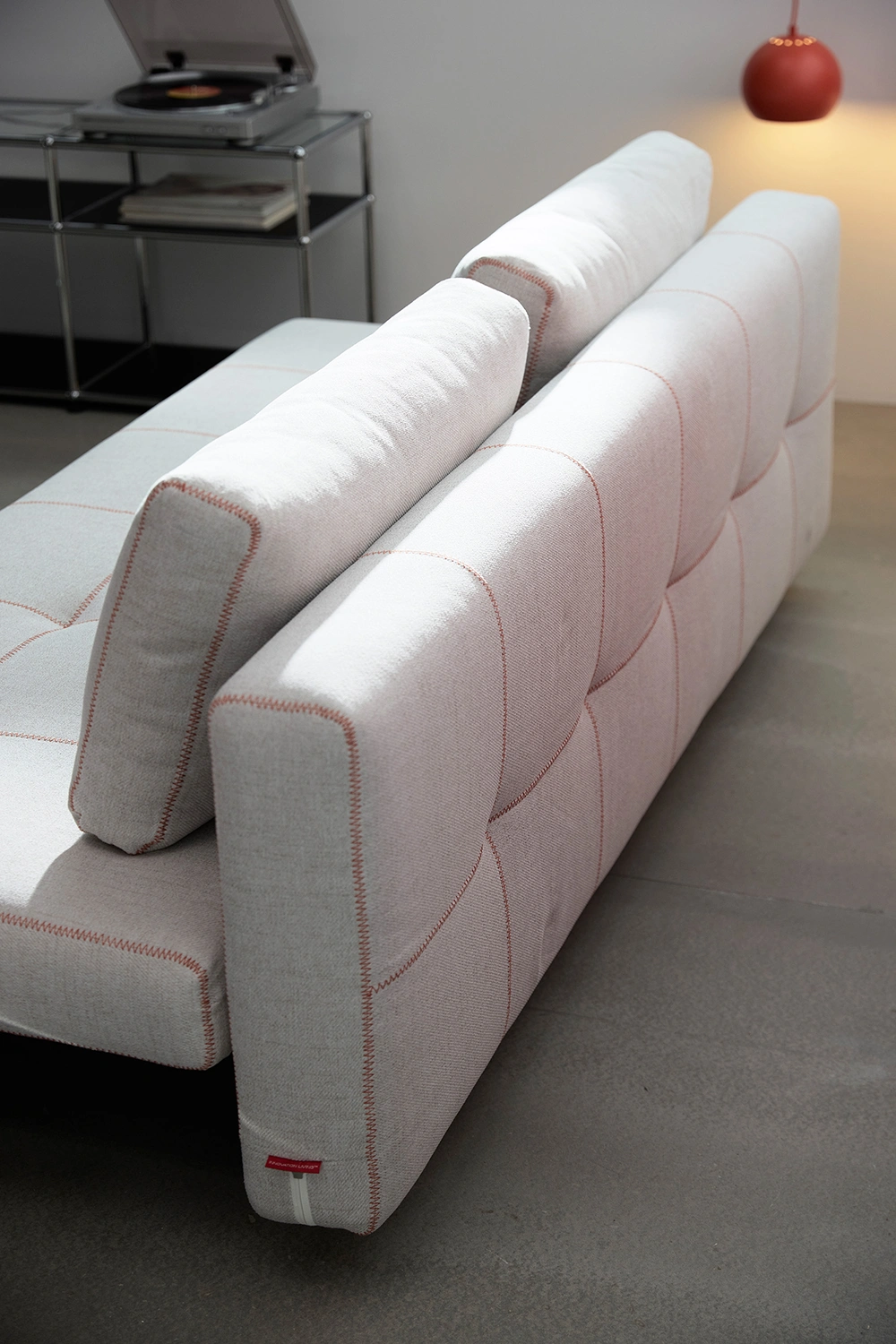 Sigga X är en bäddsoffa med sömnadsdetaljer inspirerade av Paul Smith och De Padova. Mönstren med sicksacksömmar är sofistikerad detalj som gör skillnad.