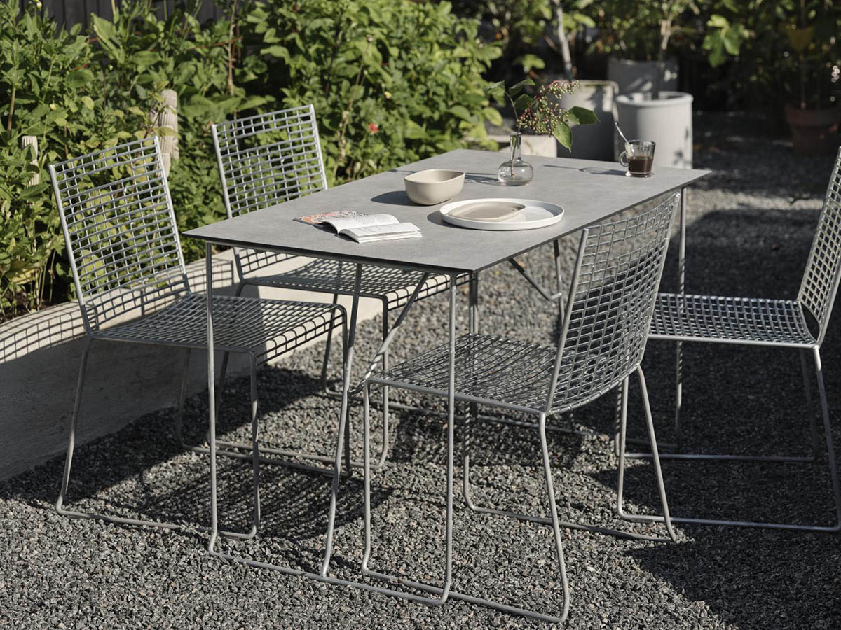 Utgå från denna smala, eleganta bordsram och välj skiva från serien Laminat för ett bord som passar just din uteplats eller balkong. De många nyanserna ger en ytterligare en mängd valmöjligheter.