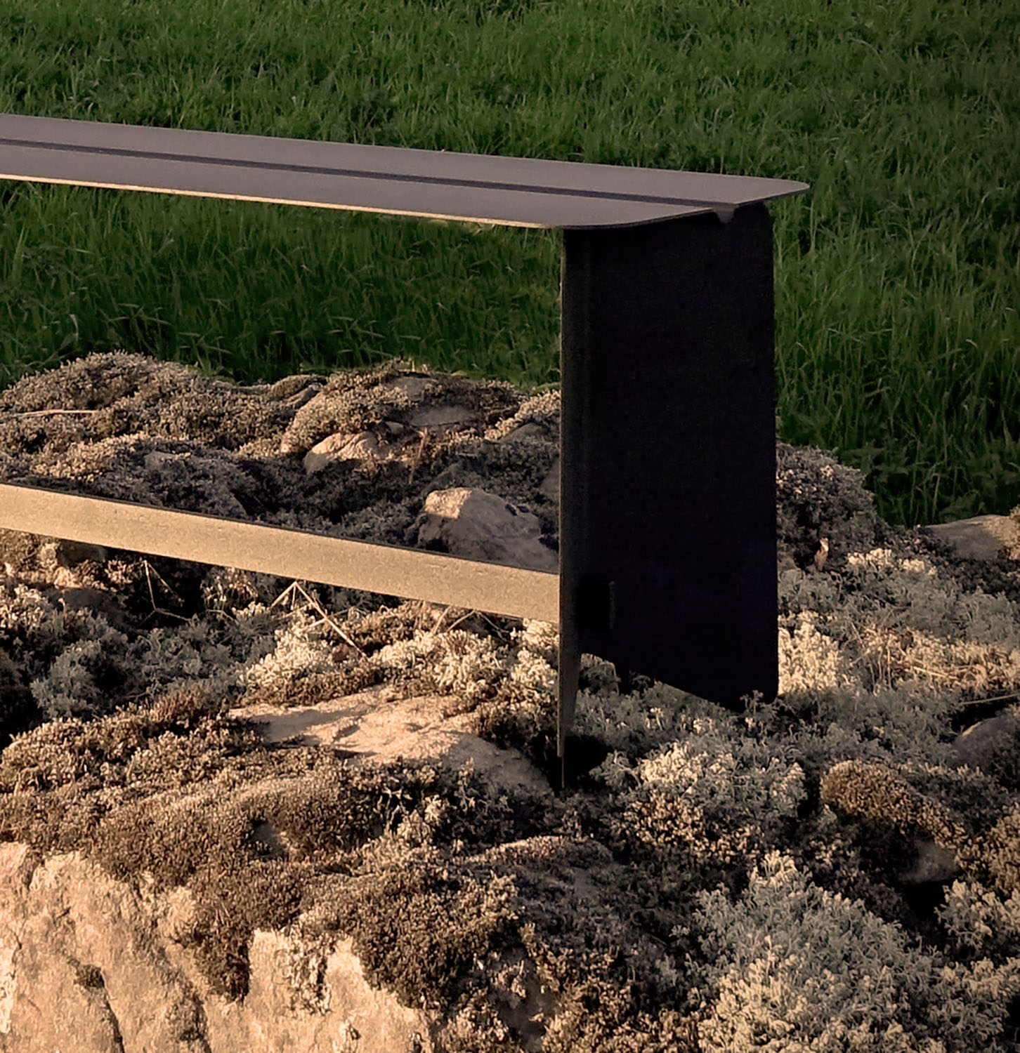 Bänken Stream har ett spännande formspråk med ett flertal vackra vinklar och detaljer.
