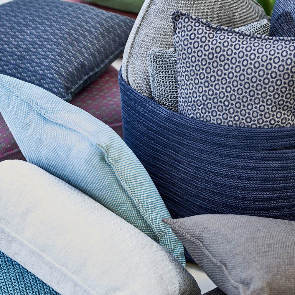 Prydnadskudde från Cane-line i mörkblått mönstrat tyg.