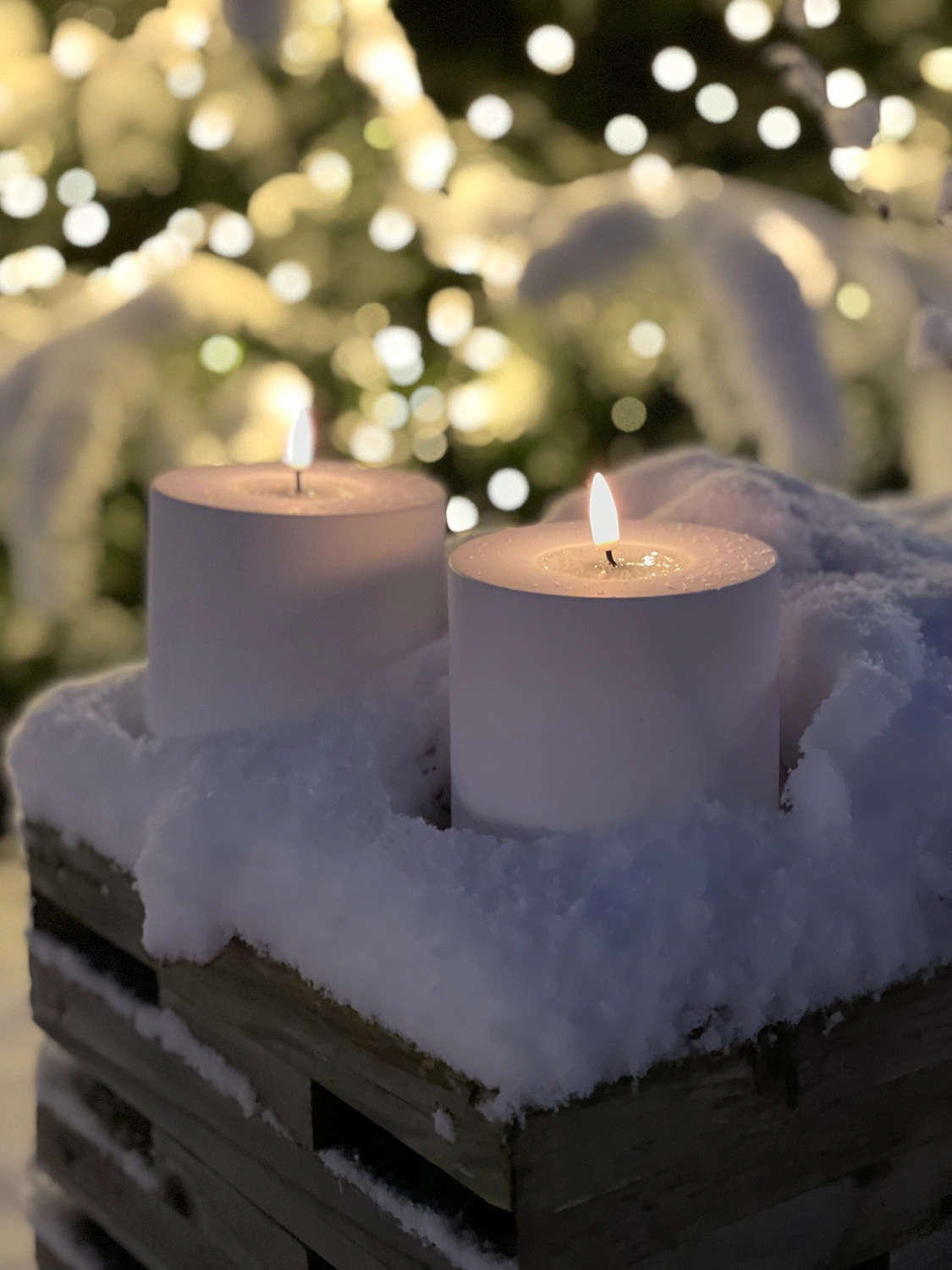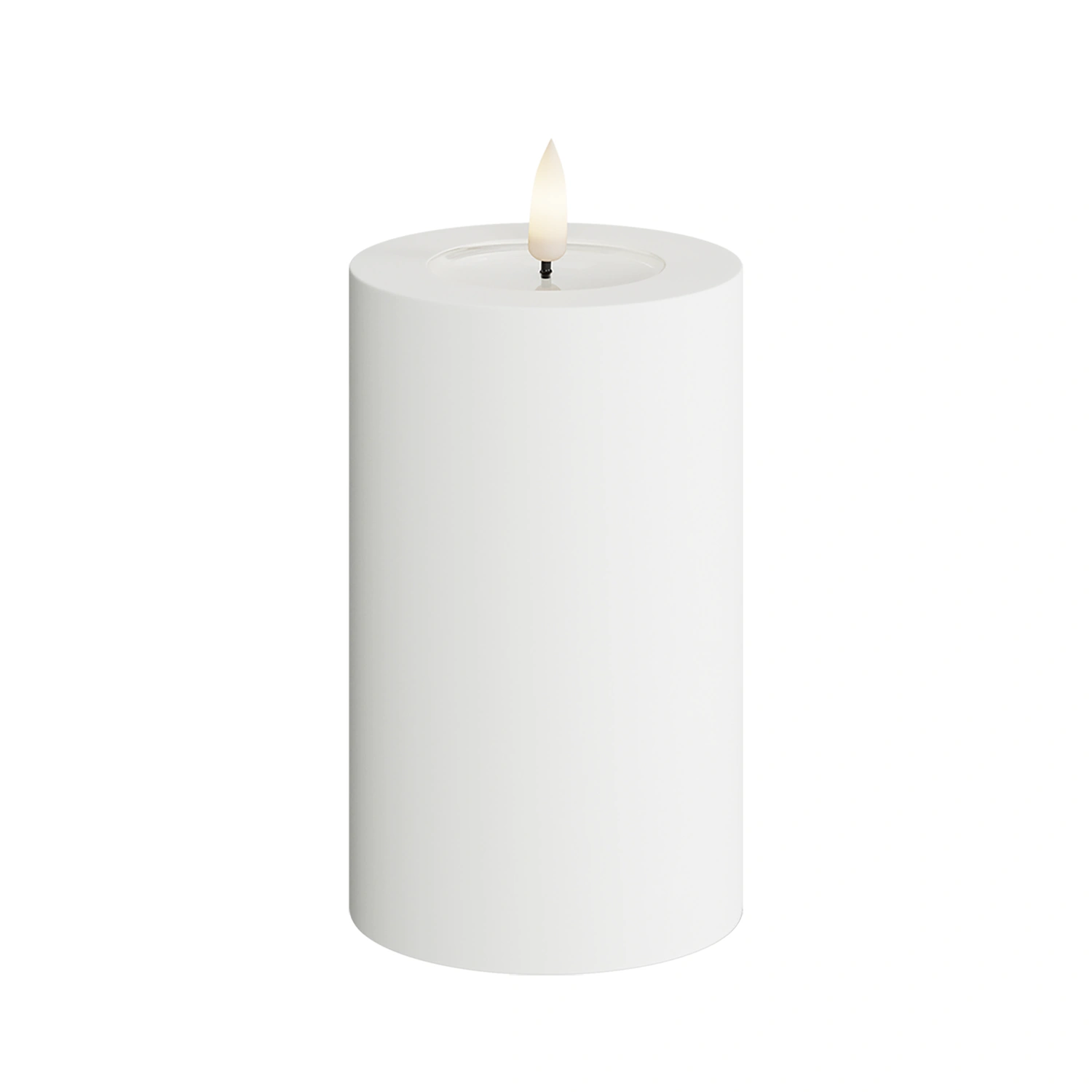 Blockljus för utomhusbruk i tålig plast med mycket verklighetstrogen LED-låga.