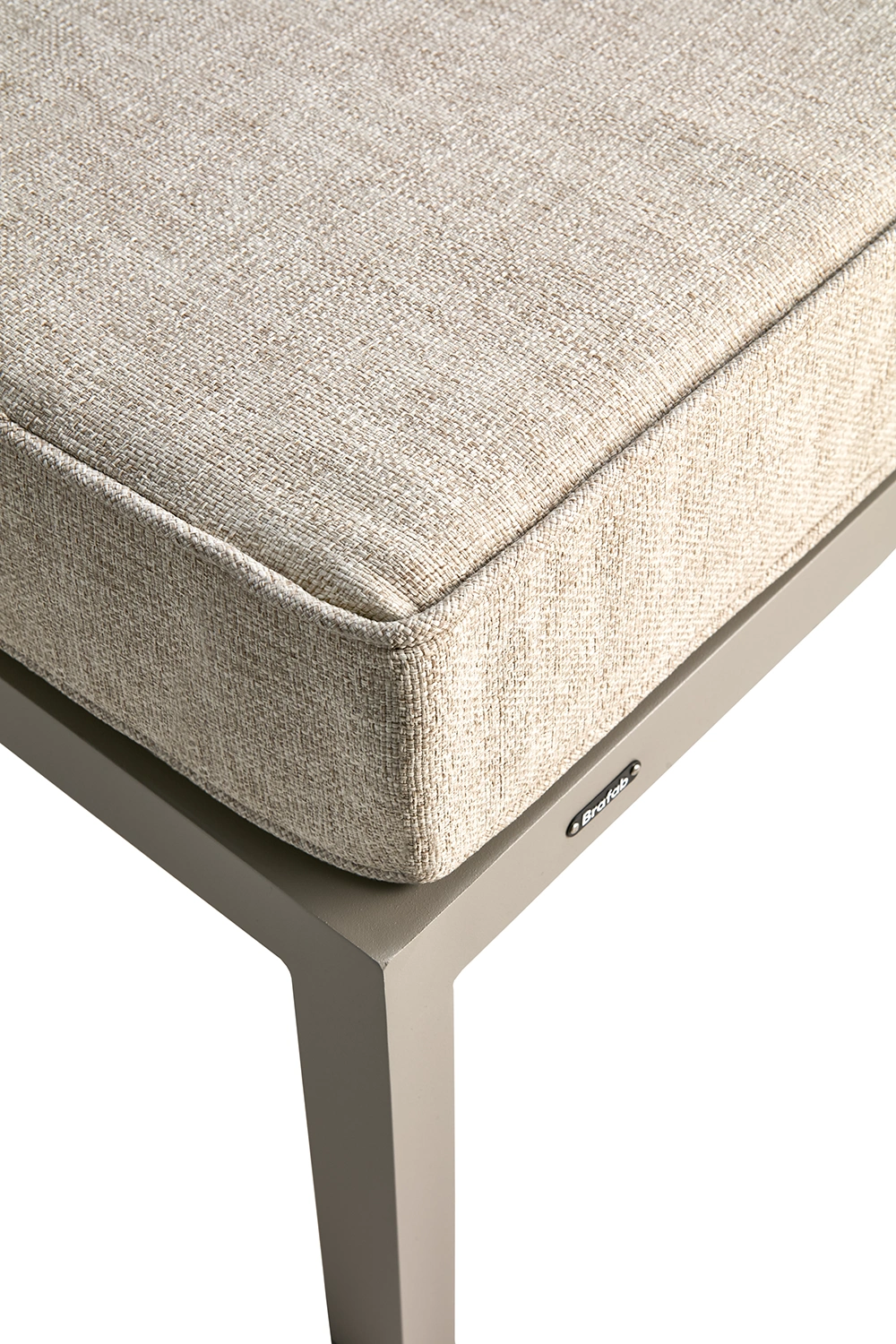 Fotpall inklusive dyna till Weldon hörnsoffgrupp från Brafab. Weldon är en ny serie av aluminiummöbler med mattlackad yta från Brafab. Den byggbara soffgruppen har allvädersdynor som är perfekta för nordiskt sommarväder. Utan dynan kan pallen användas som ett litet soffbord.