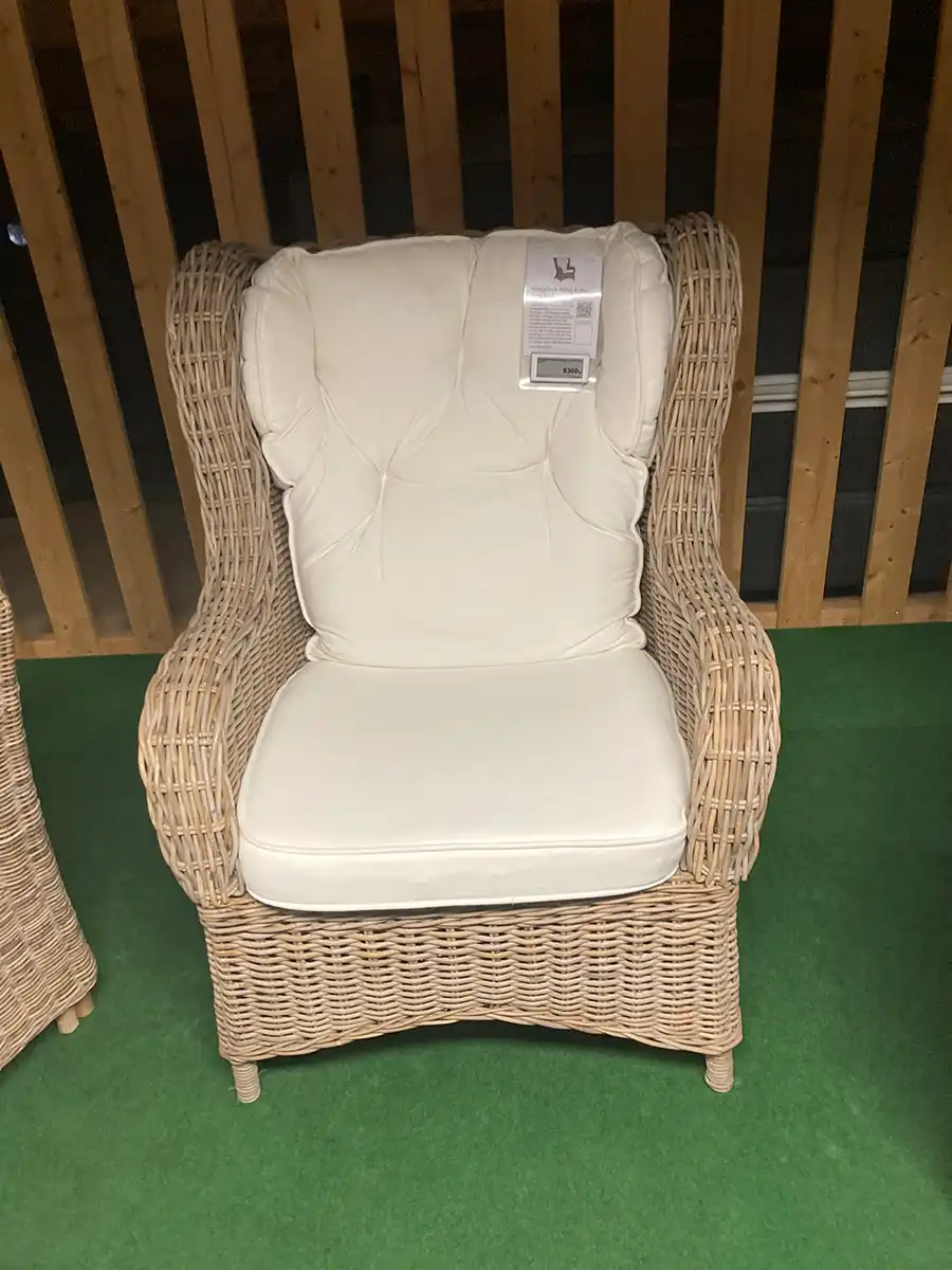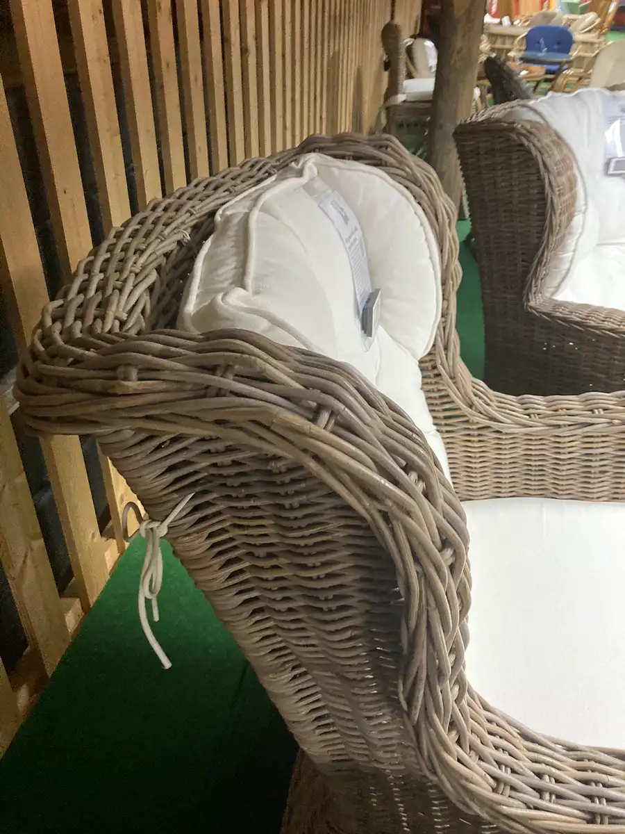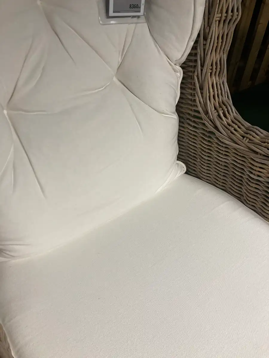 Dynorna består av en polyeterkärna som är svept med fiber alternativt en blandning av riven polyeter och fiber. Vid rengöring behöver du bara torka av rottingen med en lätt fuktad trasa. Sitsklädslarna är avtagbara och vi rekommenderar kemtvätt, ryggklädseln skumtvättas. Skulle behovet uppstå går det att köpa nya klädslar.