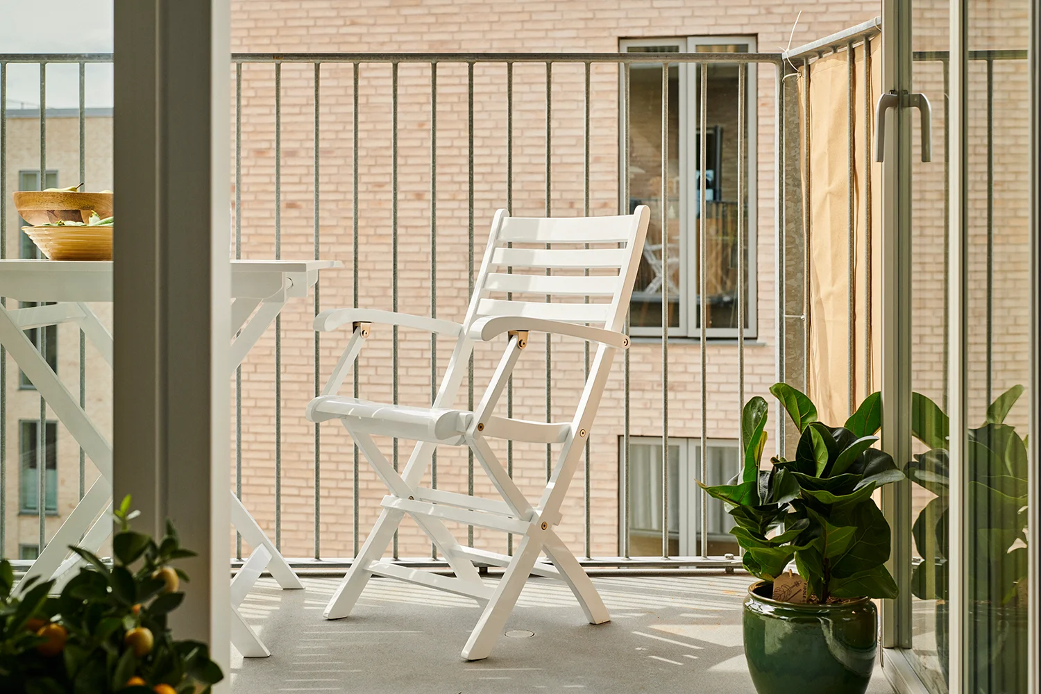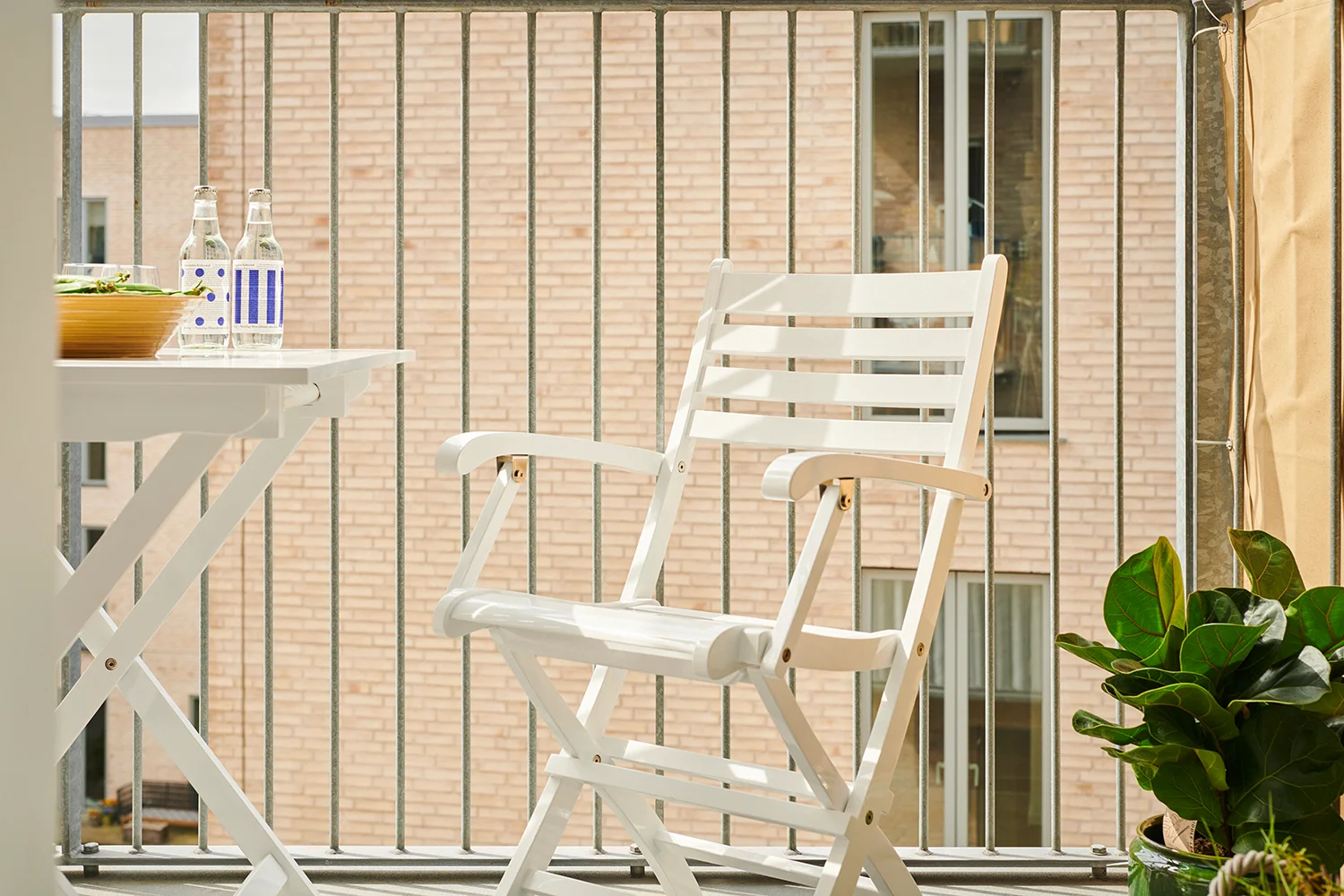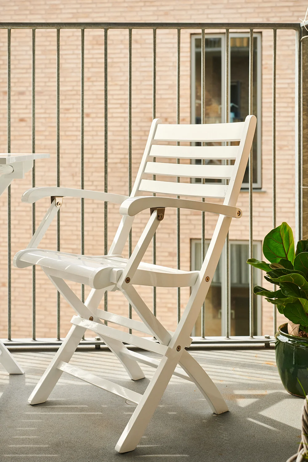 York är en enkel hopfällbar stol i mahogny, här med bord i samma serie. Gruppen är smart och praktiskt och passar mindre terrasser eller balkonger. Perfekt när man har lite plats.